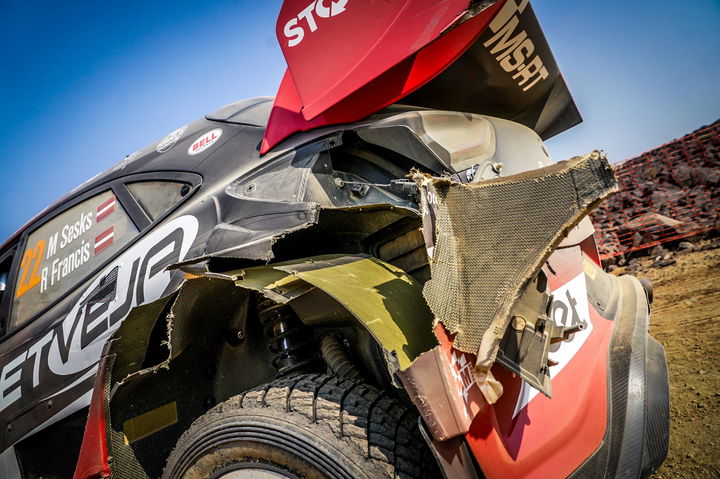 Por su parte, Nasser Al-Attiyah y Cándido Carrera perdieron algo de tiempo después de un abrupto aterrizaje precisamente en el mismo punto en el que también Alejandro Cachón y Borja Rozada tuvieron el fuerte impacto en la compresión que los llevó a abandonar. En el caso del qatarí y del gallego, se dejaron el portón del maletero y el alerón, pero pudieron seguir en carrera. En WRC2, Greensmith y Kajetanowicz son los dos primeros, detrás en este caso de un Oliver Solberg que vuelve a ser el mejor Rally2 clasificado, justo entre los dos pilotos titulares a tiempo completo de M-Sport, mientras que las malas noticias para los nuestros se han completado con el abandono de Jan Solans y Rodri Sanjuán después de dañar la caja de cambios tras encontrarse una piedra en medio de la trazada.