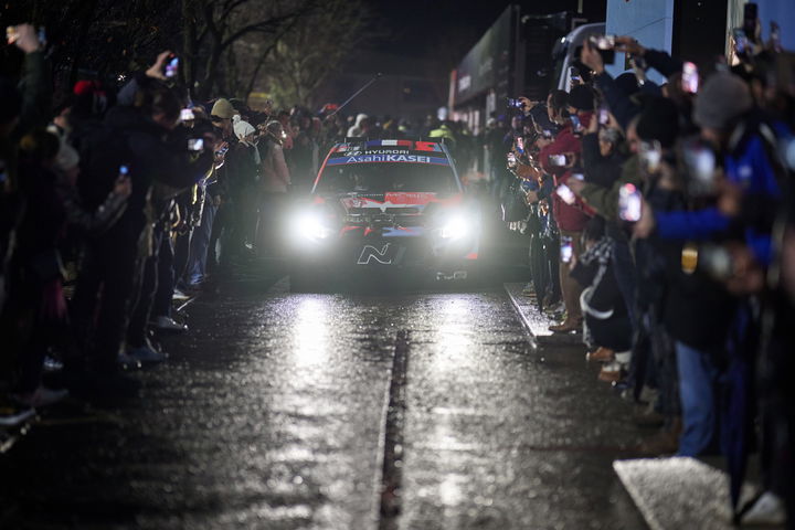 Las luces del puerto, de los lujosos escaparates y de las marquesinas publicitarias se reflejaba sobre el asfalto de las calles de Mónaco en el momento en el que los Rally1 salían a competir en la superespecial. Todavía con los neumáticos de invierno montado, el recorrido elegido por el ACM para devolver al Rally de Monte-Carlo al escenario en el que ya compitió antaño, se convirtió en una verdadera pista de patinaje al mismo tiempo que la lluvia arreciaba.