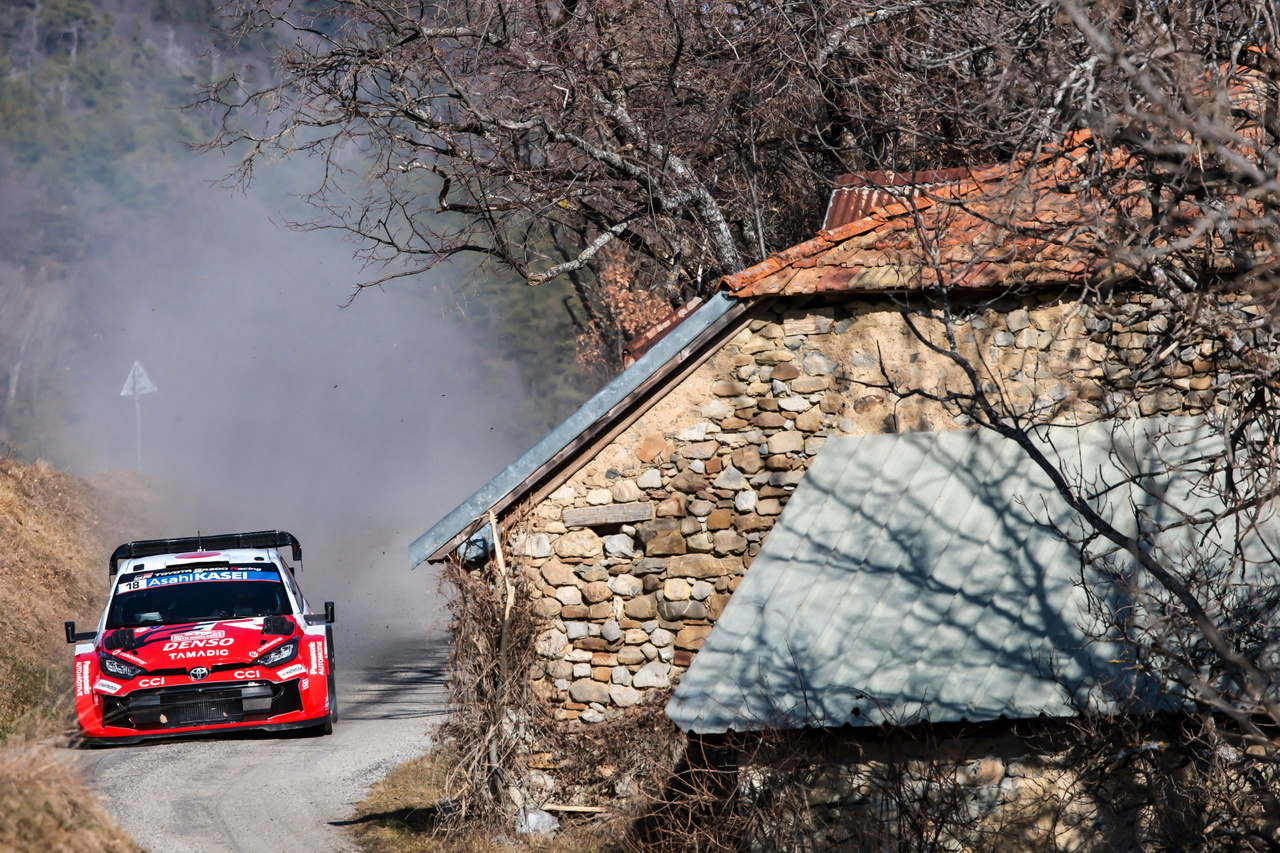Regresando al mejor tiempo, Katsuta y Aaron Johnston lograron el mejor registro en la primera de sus pasadas, un contundente 2:31.8 que no pudo ser mejorado por ninguno de sus rivales, especialmente cuando la carretera, seca desde el principio, se ha ido poco a poco ensuciando con el paso de los coches. Tras él terminaba el ganador en 10 ocasiones de la prueba monegasca, un Sébastien Ogier que se quedaba a 1 segundo y tres décimas del crono del japonés, mientras que Oliver Solberg se quedaba tercero a tres décimas del de Gap.