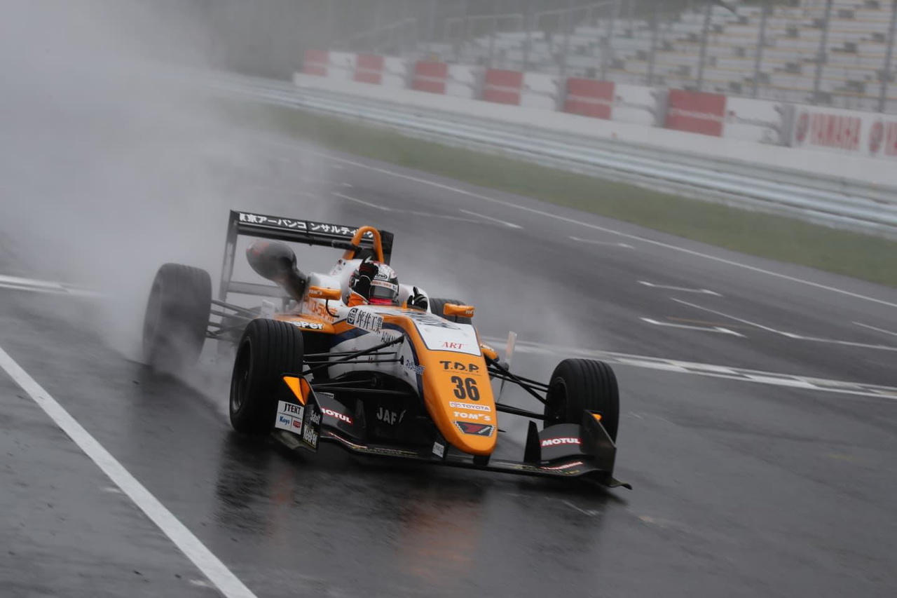 Tal y como marca la normativa, el orden de salida de la tercera carrera es el del resultado de la primera carrera del fin de semana. De esta forma, Sho Tsuboi se ganó el derecho a partir primero, por delante de Ritomo Miyata, con Ukyo Sasahara y Yu Kanamaru en segunda fila. Tras ellos, Yoshiaki Katayama y Toshiki Oyu compartían tercera fila, mientras Kazuto Kotaka y Sena Sakaguchi copaban la cuarta. El top 10 quedaba completo con Kiyoto Fujinami y DRAGON. La mañana del domingo se levantó con una importante cantidad de agua en pista y aún más cayendo del cielo, pero para cuando llegó el momento de la salida con una carrera algo más corta para evitar cruzarse con el tifón por la tarde, el estado del circuito era aceptable para los monoplazas.