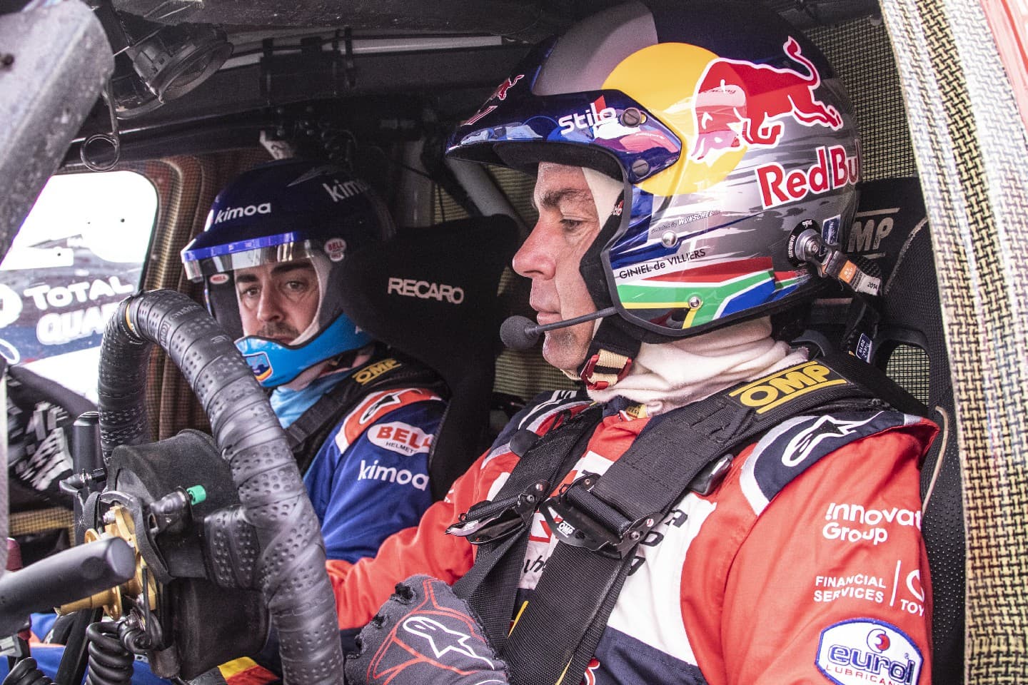 Con Giniel De Villiers encargado de explicarle el funcionamiento, el bicampeón del Mundo de Fórmula 1 se ha divertido al volante de la Toyota Hilux V8 4×4 en una jornada en la que ha podido compaginar superficies duras con dunas, haciéndose una primera idea de cómo sería competir al volante de un vehículo completamente distinto a todo lo que ha pilotado antes. Ni tan analógico como un coche de la NASCAR o un kartcross, ni tan tecnológico como un LMP1-H o un monoplaza del Gran Circo.