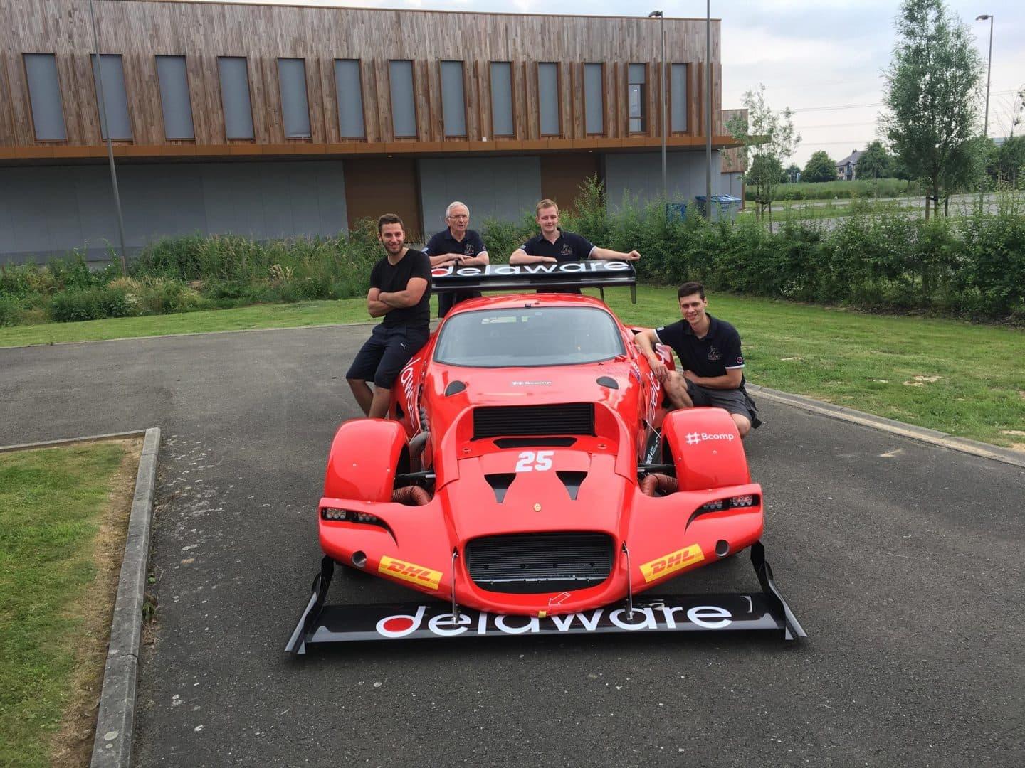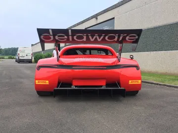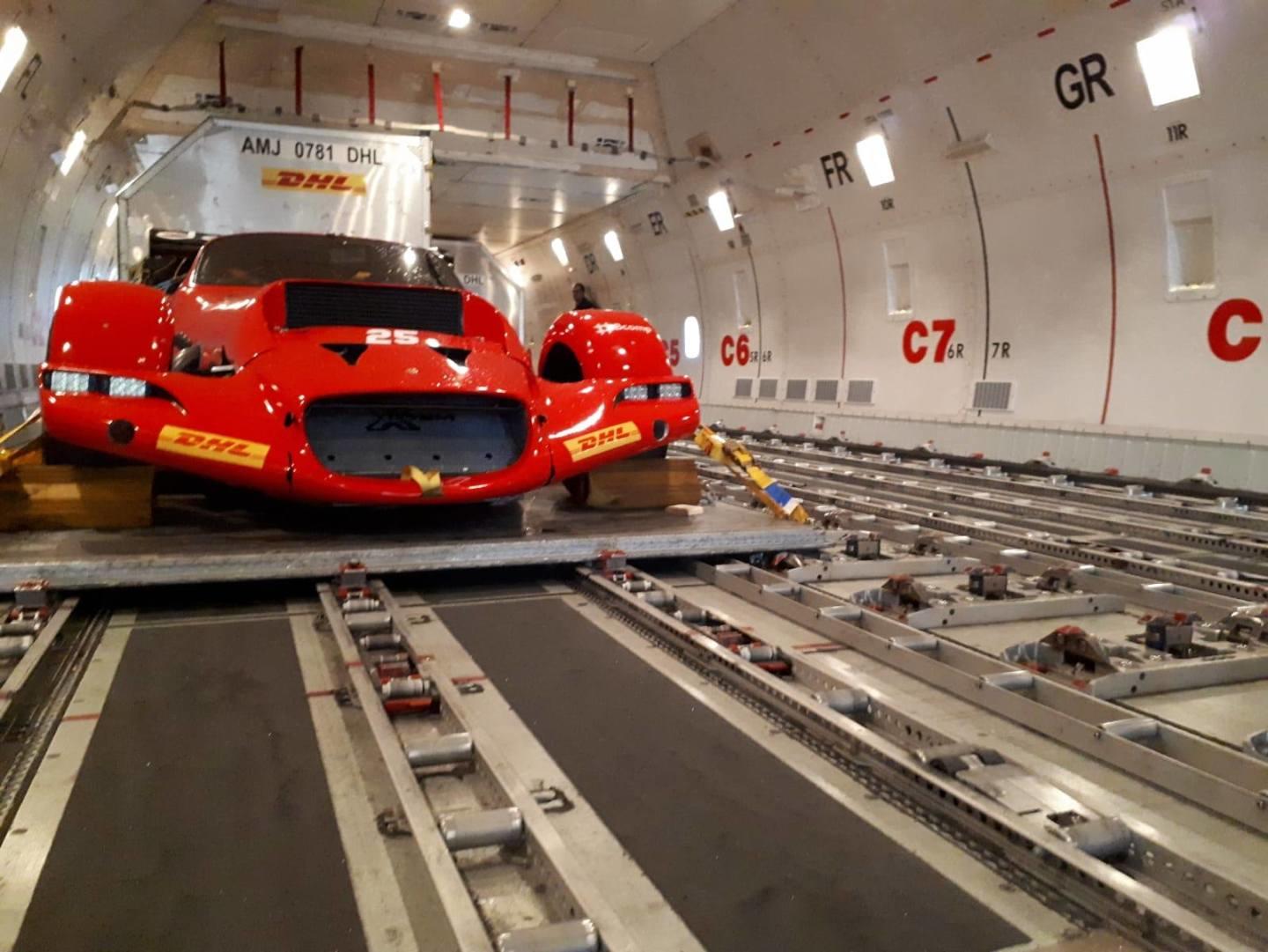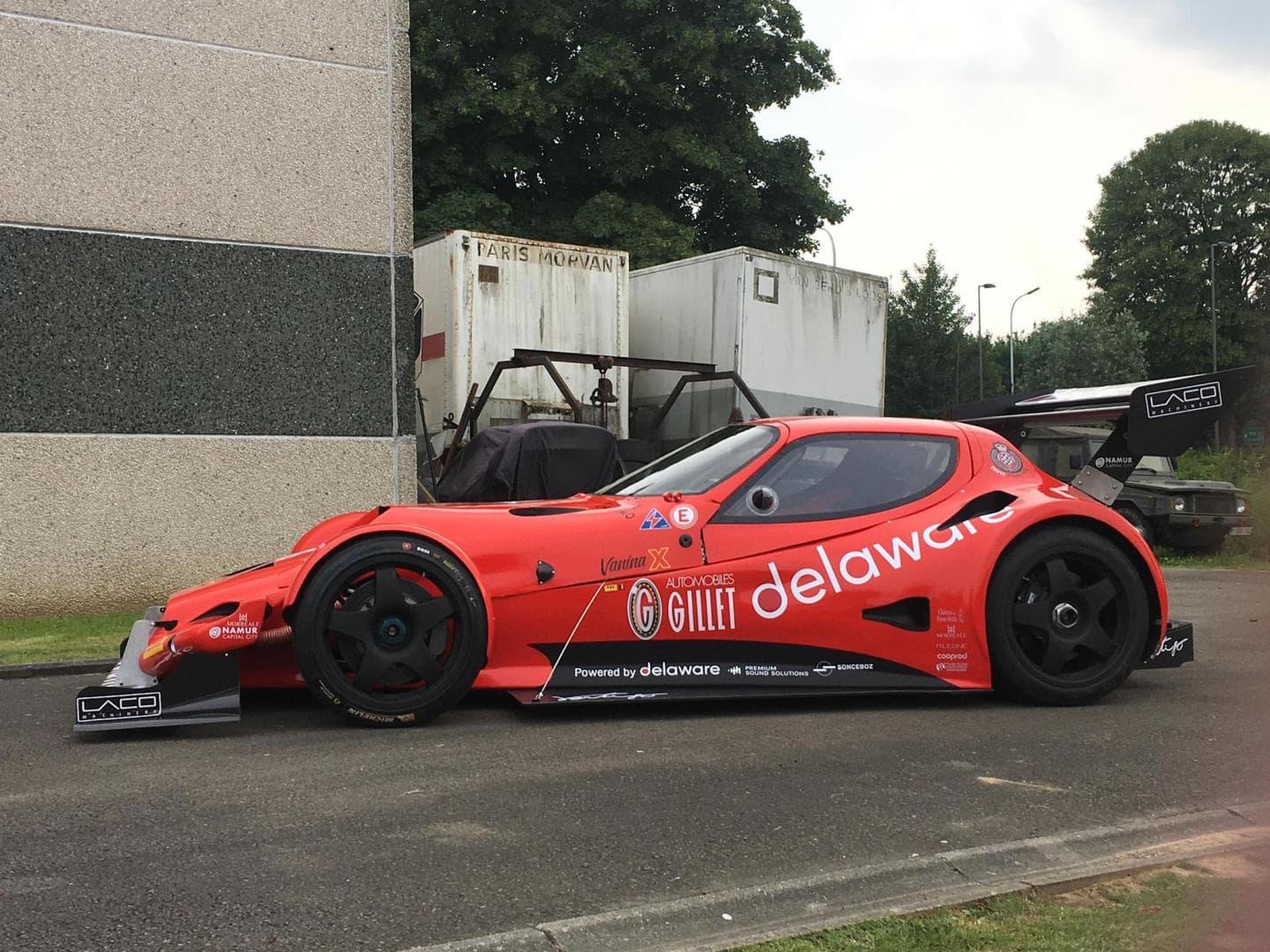 De un rojo impoluto, montada en una de las plataformas de transporte de la compañía de paquetería alemana y con una estética que cambiaba mucho respecto a lo que habíamos visto hasta ahora en los bocetos y en la primera presentación del Concept Car. Han sido muchos meses de trabajo en los talleres de Gembloux hasta completar con un proyecto que ha ilusionado y estresado a partes iguales a los hombres de Tony Gillet.