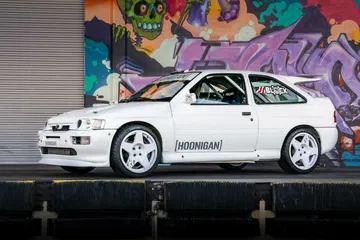 Concretamente nos encontramos ante un Escort RS Cosworth Grupo A con su característico alerón trasero y salida de escape lateral, equipado con cambio secuencial de 7 velocidades y un motor del Escort WRC de 1997 (modificado con una nueva culata para soportar la mayor potencia), el cual se convirtió en el primer encargo de la firma del ovalo a M-Sport. A buen seguro el equipo británico también ha tenido algo que ver en la creación de este nuevo ‘injerto’ que está destinado a la competición, concretamente a su medio natural, los rallyes.