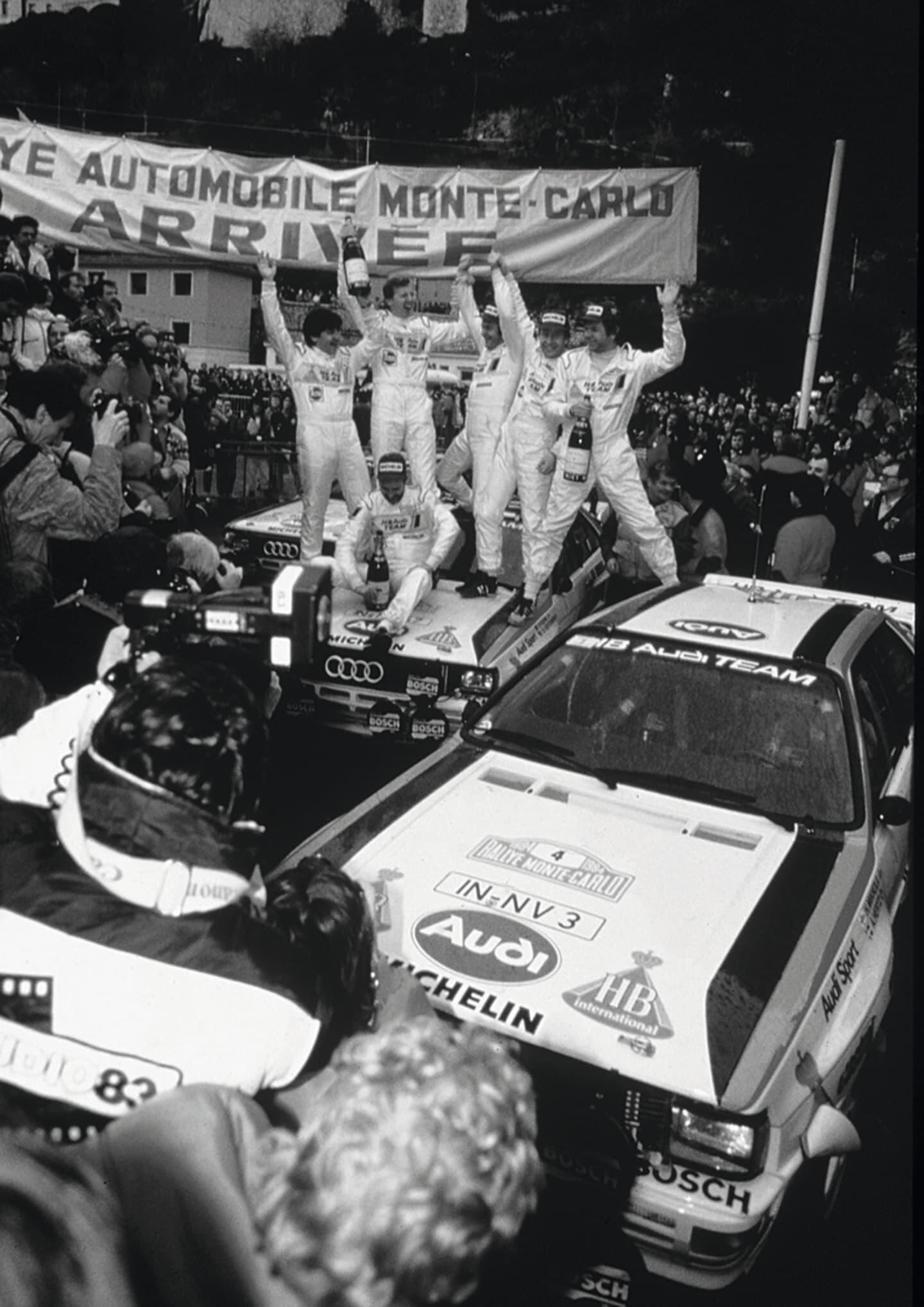Nunca había soñado con convertirme en campeón del mundo. Pero lograr ganar, aunque solo fuera una vez, en Monte-Carlo, el rally más legendario del mundo, era el gran objetivo de mi vida. Por aquel entonces solía decirme: «Cuando gane en Montecarlo, dejo el automovilismo. No lo hago para ganar dinero, sino para ver si soy un soñador o realmente soy el mejor». Esa era mi motivación. En muchas de las fotos donde salgo como campeón aparezco muy serio. Así es mi carácter: no me pongo a dar gritos de alegría. Cuando me bajo del coche después de haber alcanzado la meta, lo hago contento por haber hecho mi trabajo a la perfección y lo doy por zanjado. Pero cuando gané en Montecarlo en 1980, fue distinto. Estuve eufórico durante tres días. Había triunfado en la vida, conseguido lo que me había propuesto. Realmente había decidido dejarlo, pero mi copiloto Christian Geistdörfer me dijo: «¡Estás loco! ¿Ahora que por fin va todo sobre ruedas quieres dejarlo?». También mi mujer me dijo: «¡No seas necio! A ti te encanta conducir, si lo dejas te vas a volver loco». Yo quería participar en rallyes, pero no me sentía nada atraído por el culto a mi persona. Tuve que aceptar que no se podía evitar y me decidí a continuar. ¡Por suerte! – Walter Röhrl