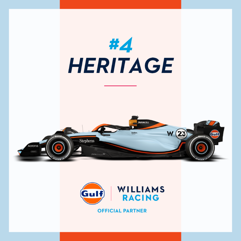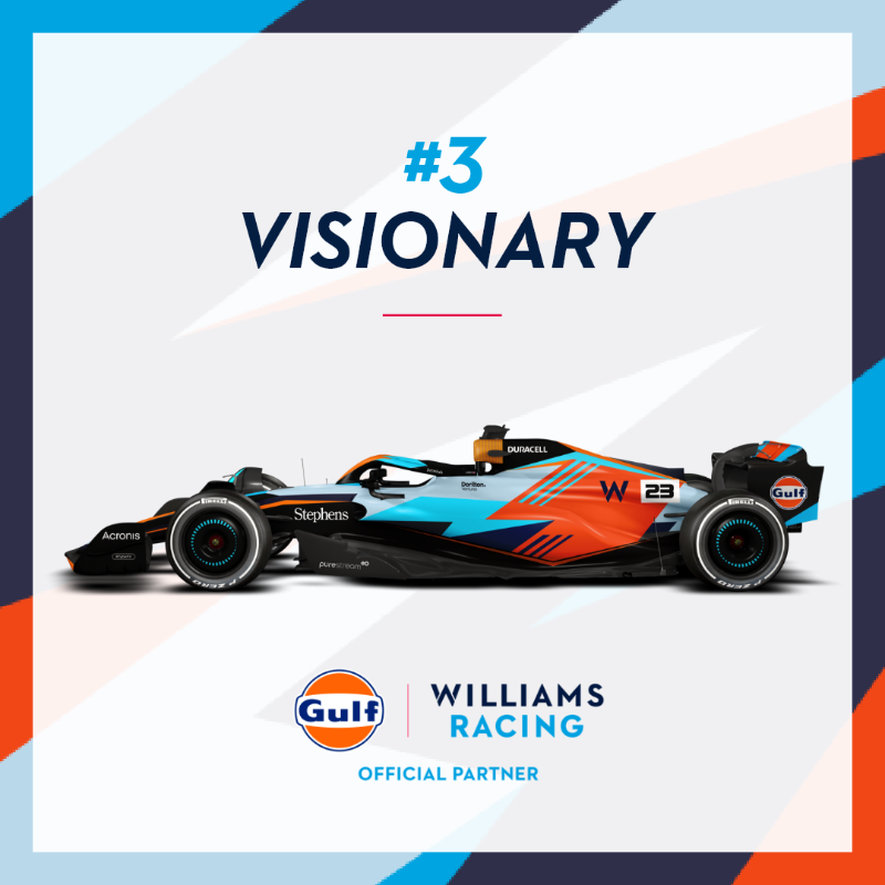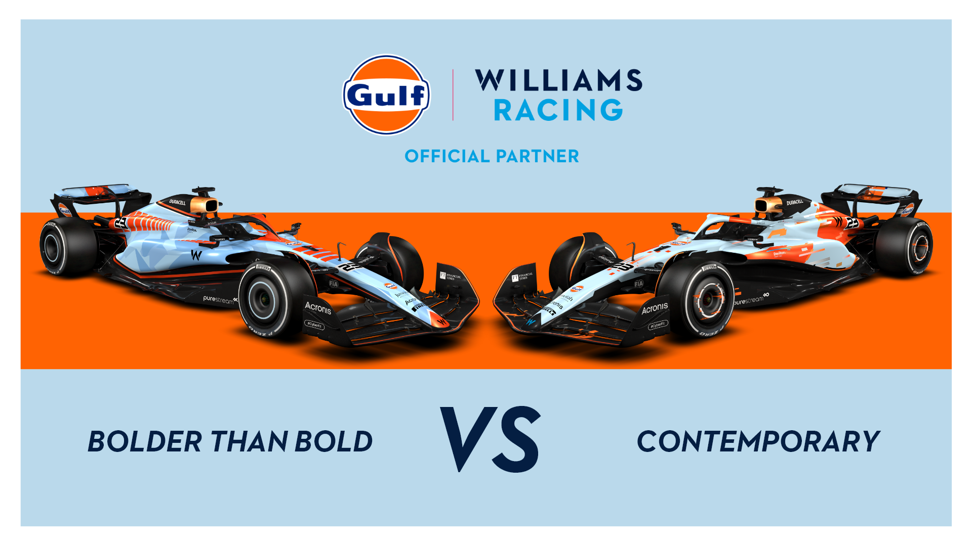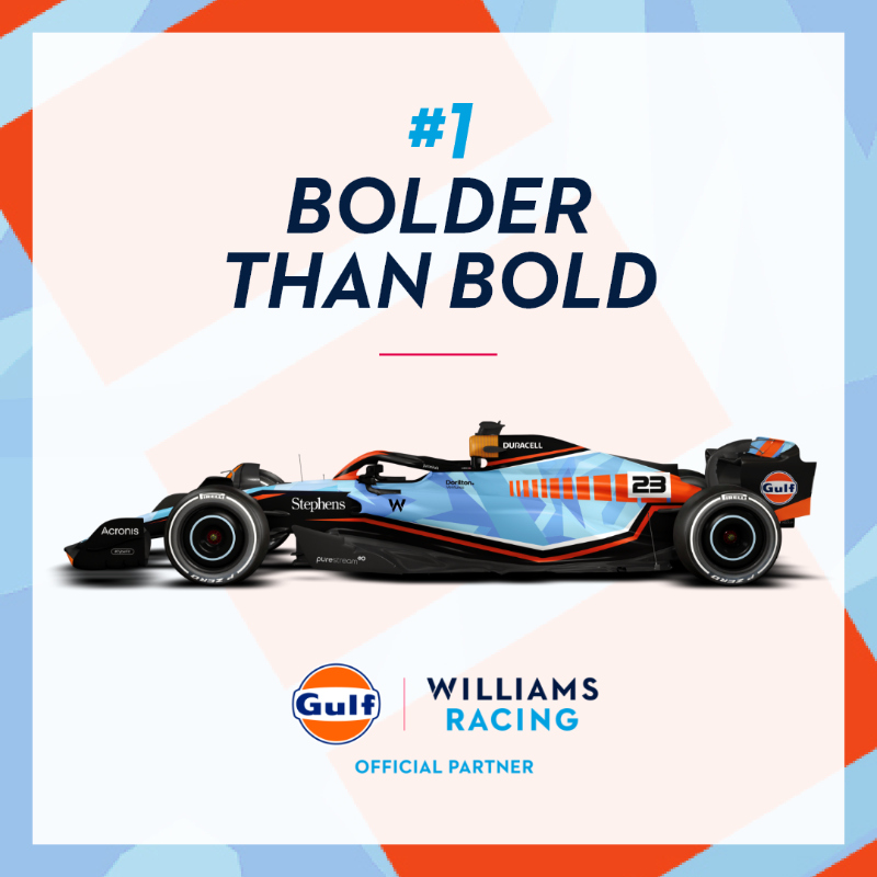 Los colores icónicos de Gulf han creado diseños deslumbrantes a lo largo de la historia del automovilismo, y este año no será diferente. Estamos increíblemente orgullosos de anunciar que los autos de Williams Racing contarán con una librea de Gulf en los Grandes Premios de Singapur, Japón y Qatar en 2023. Este proyecto se trata de dar control a los aficionados y colocarlos en el centro de nuestra asociación con Williams Racing. Estamos convencidos de que cada tema y librea quedará muy bien y esperamos ver cuál eligen los fans – Mike Jones, CEO de Gulf Oil International