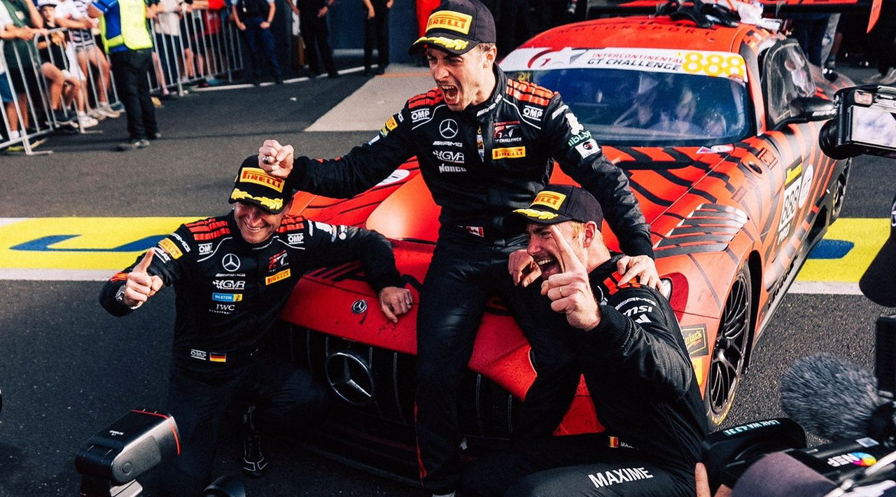 Cuando todo parecía indicar que entre Kelvin van der Linde y Jules Gounon estaría el ganador de la prueba, el piloto sudafricano dejó sin pista al de Andorra, lo que propició un contacto que les dejó sin opciones a unos 40 minutos para el final, situación que fue aprovechada por Maxime Martin para asumir el liderato y llevar al Mercedes-AMG GT3 Evo número 888 de GruppeM a la victoria en unas 12 Horas de Bathurst que tuvo nueve períodos de