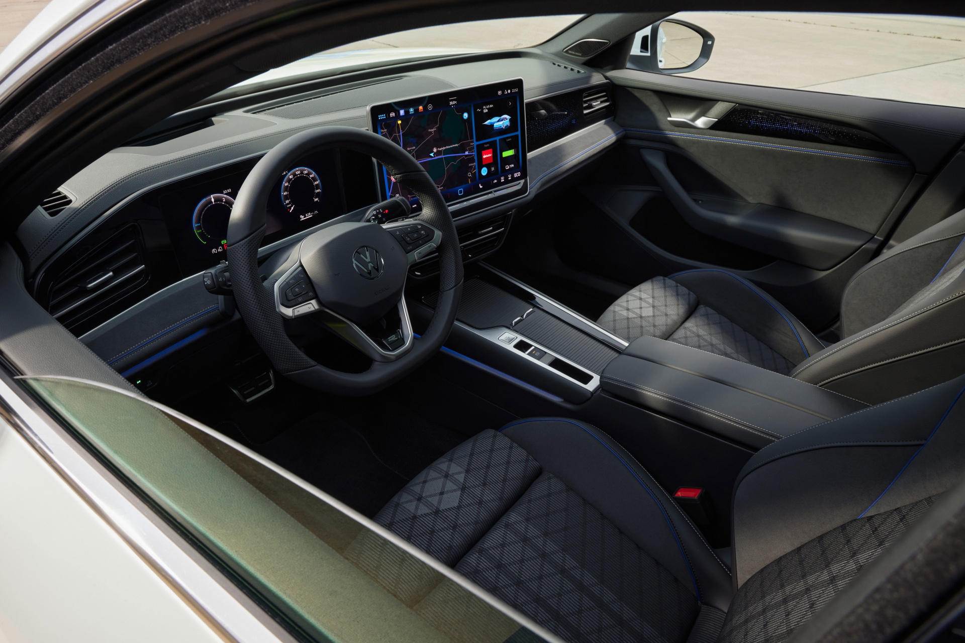 Al igual que sucede con el exterior, el diseño interior del Passat es minimalista y sobrio, aunque con una fuerte componente tecnológica gracias al protagonismo de su avanzado sistema de infoentretenimiento. En términos generales el Passat es un coche bien construido y que hace uso de materiales de calidad, destacando sobremanera la posibilidad de instalar unos asientos ergoActive que ofrecen un mayor nivel de confort y que reducen la fatiga a la hora de viajar.