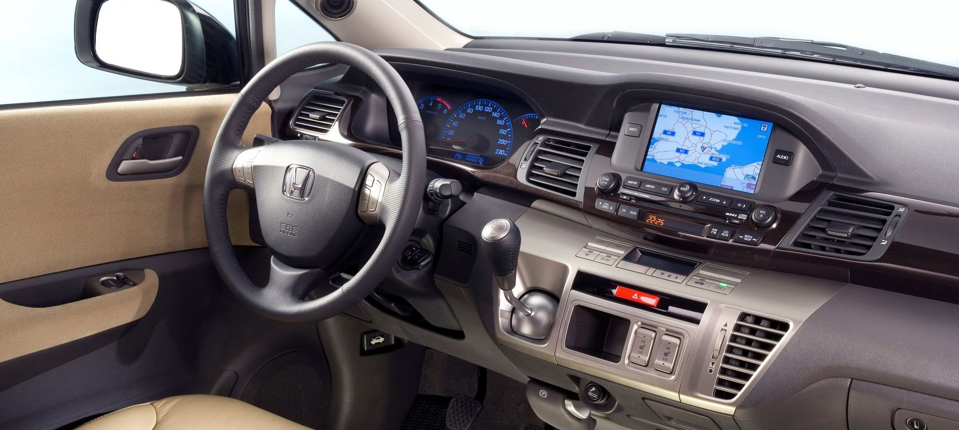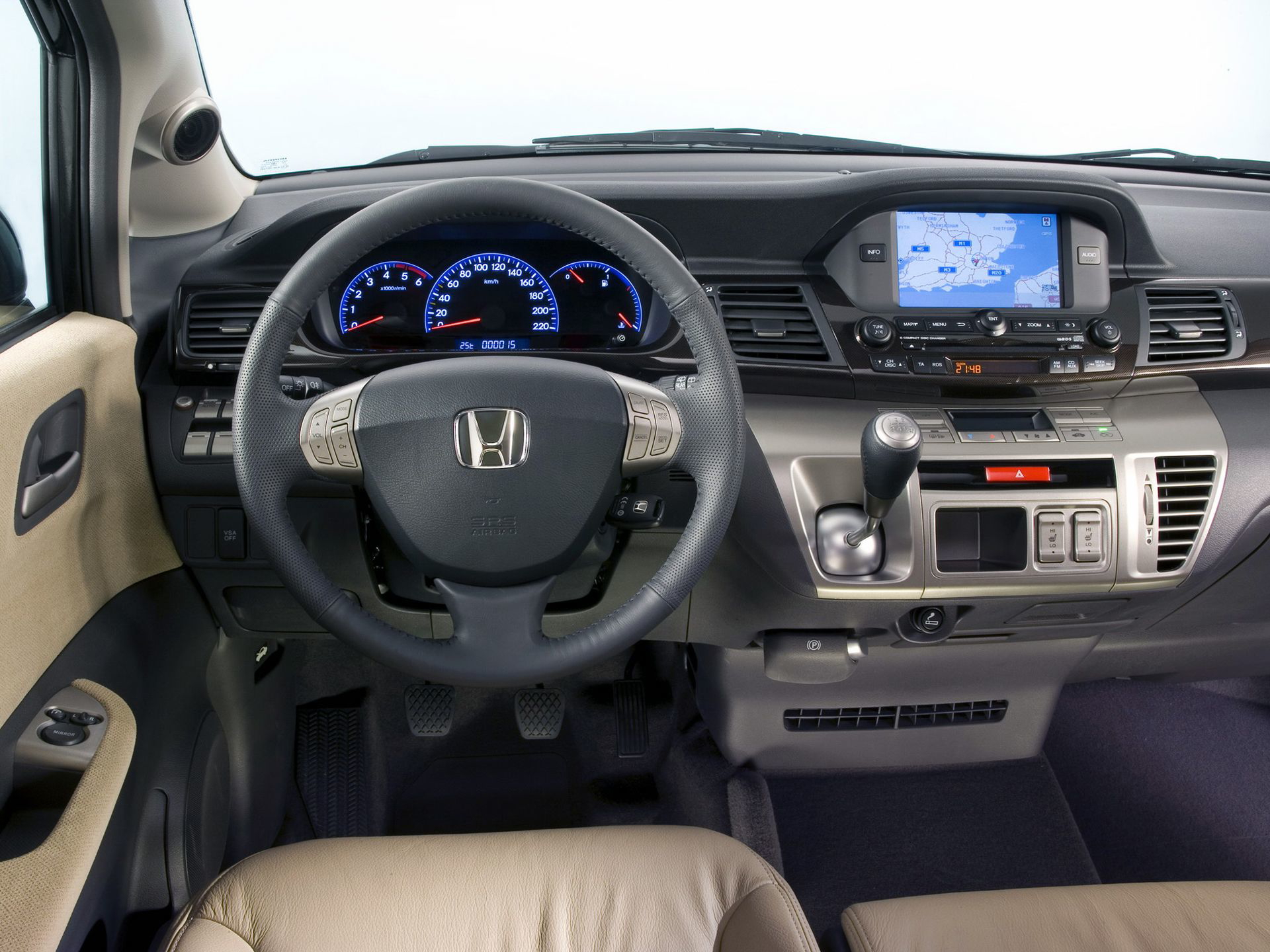 Para poder albergar seis asientos en su interior, la palanca de cambios fue desplazada al salpicadero, cuya disposición de controles es lógica y ergonómica. Su interior está plagado de huecos portaobjetos y portabebidas, como buen coche familiar. Además, se podía equipar con asientos de cuero e inserciones de madera, que le conferían un toque distinguido, incluso premium. Con 439 litros, su maletero tiene suficiente capacidad para los bártulos de una familia media. Todos los Honda FR-V fueron construidos en Suzuka (Japón).