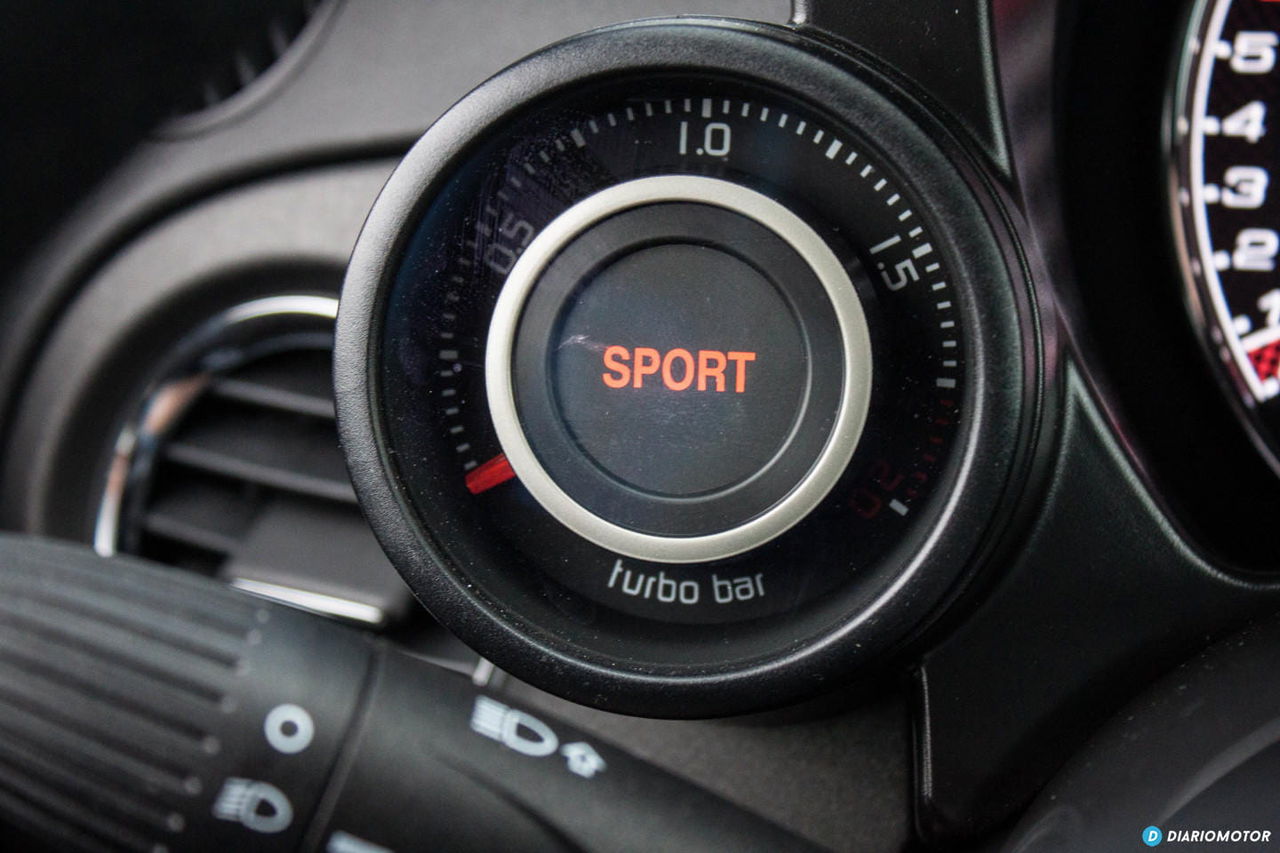 Abarth 595 Competizione 2016. Al activar el modo Sport, la palabra Sport se tiñe de blanco en vez de naranja. Resulta más sencillo advertir que se encuentra activo.