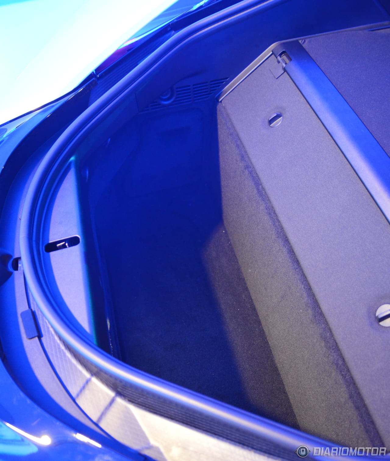 Hora de adentrarnos en su interior. La fibra de carbono nos recibe desnuda en el umbral de las puertas. El proceso de entrada es similar al de un Lotus Elise: primero hay que meter el culo para después pasar las piernas, aunque por suerte, exige menos flexibilidad que el británico.