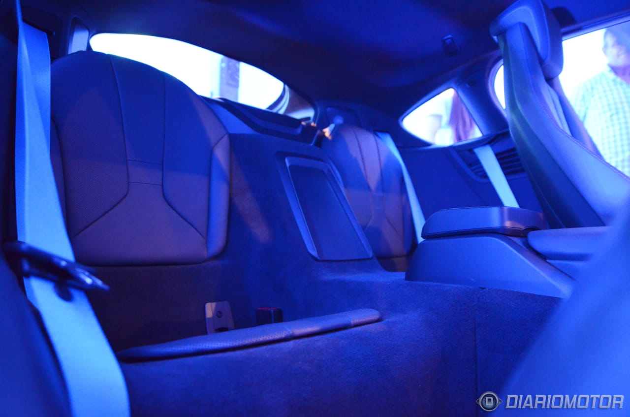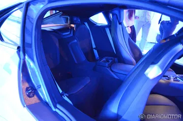 Tras sendos asientos delanteros encontramos unas plazas traseras dispuestas a ejercer de plaza de emergenciapara un tercer ocupante. Son testimoniales, mu y muy contenidas, por lo que lo ideal es tomarnos su habitáculo como el de un Toyota GT 86 y pensar en el i8 como un biplaza con la posibilidad de una tercerra plaza puntual tras el asiento del copilto. Lo mejor, es verlo directamente como un gran maletero o plazas para niños.