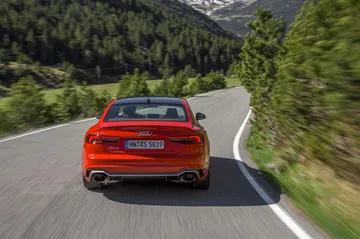 11.- En lo que a diseño se refiere sus nervios se han marcado más, se ha acentuado la presencia de trazos rectos y respecto al actual Audi a5 destaca la parrilla delantera, el gran splitter integrado en su paragolpes delantero, la talonera lateral con un acento negro, el fino alerón tipo lip sobre el maletero y su difusor posterior, donde vuelven a estar presentes esas salidas de escape, de generoso tamaño.