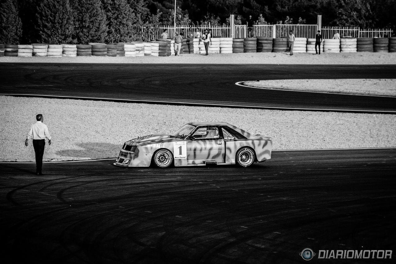 Apenas reconocible, bajo esa carrocería digna del Grupo B se esconde un Ford Mustang de tercera generación modificado hasta la médula, con un bloque turboalimentado muy serio bajo su capó. Entre su paragolpes frontal y el suelo apenas cabía un dedo. Atentos al detalle de los neumáticos Hoosier de competición.