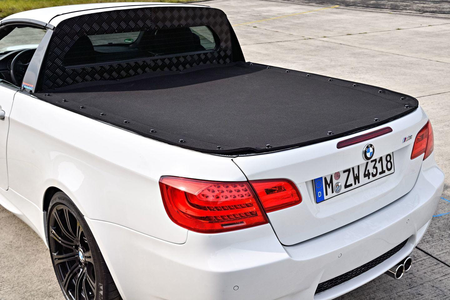 Como el querido BMW M3 Pickup de caja E30 estaba ya bastante cansado tras más de 25 años de servicio, BMW decidió construir un reemplazo usando como base un BMW M3 descapotable. Fue fabricado en 2011, de manera poco espectacular, en los talleres de BMW Motorsport. A alguien entonces se le ocurrió que sería una buena idea jugar un poco con la prensa del motor. Aprovechando que este pickup fue legalizado para su uso en carretera, BMW aprovechó para calibrar su dinámica en Nürburgring. Las fotos espía causaron todo un revuelo.