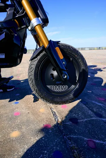 Dispone de neumáticos sobre llantas de 14 pulgadas, frenos de disco, con ABS en rueda delantera, y los controles de tracción de BMW (ASC y RSC). También de una instrumentación digital muy compacta, de 3,5″, conector USB-C, conectividad móvil con el smartphone, también de acceso y arranque inteligente.