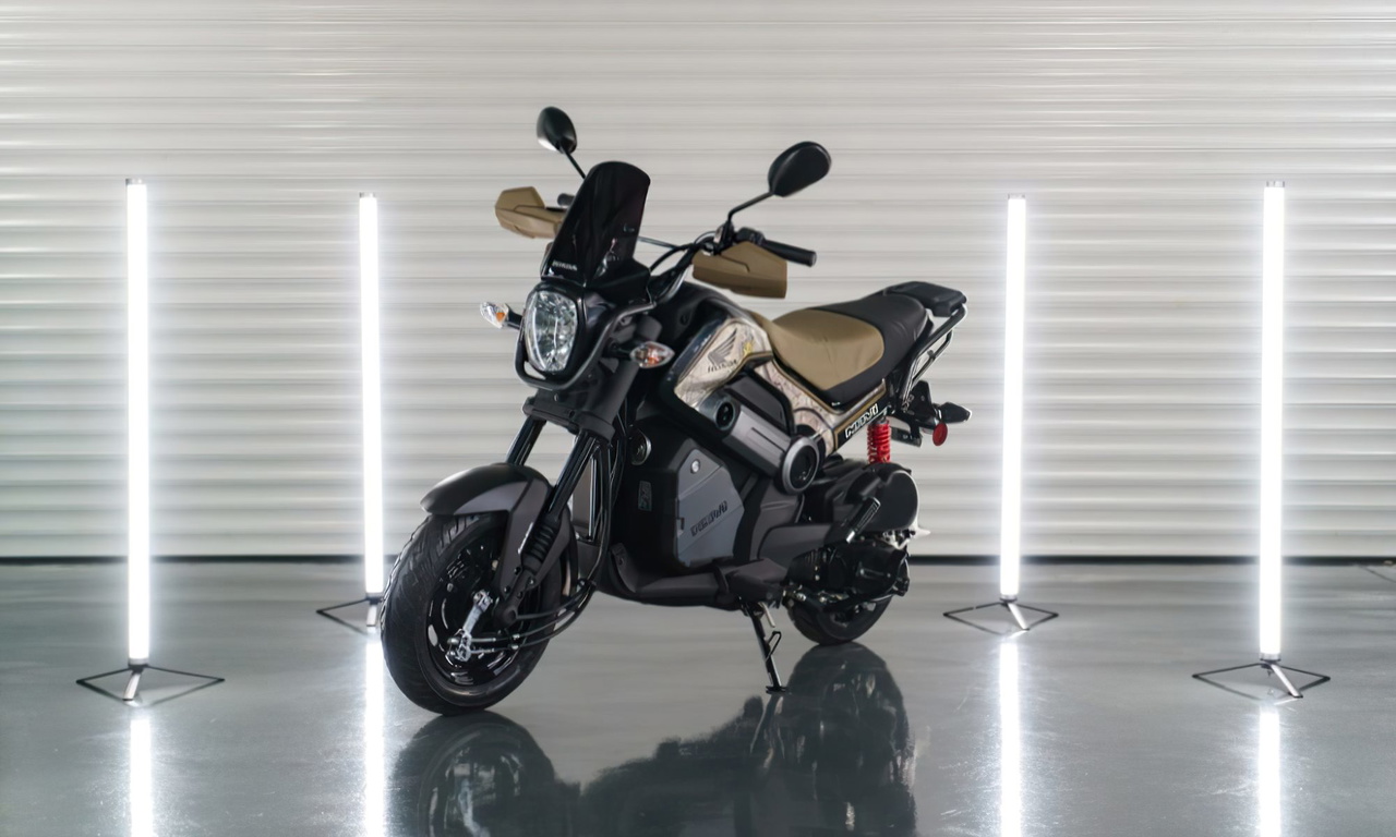 Esta sería la moto de pulgarcito si fuera aventurero. Bueno, quizá sea exagerar, pero esta «motillo» combina tamaño reducido, una maleta en sus entrañas y pretensiones offroad con la comodidad de girar el puño y dejarte llevar de una scooter. ¡Te presento la Honda Navi Rally!