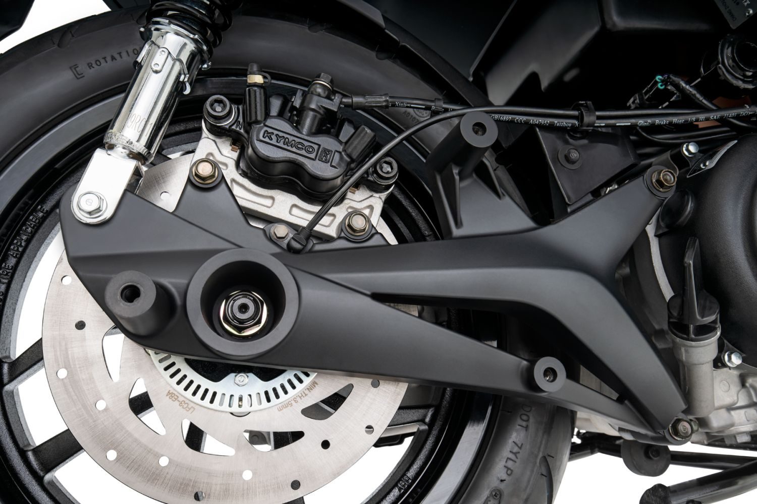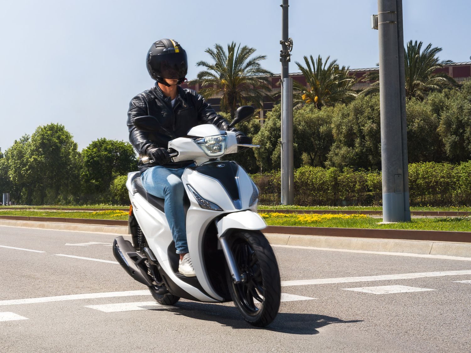 La dotación de serie en la actualizada Kymco People S 125 contempla en seguridad elementos como el sistema antibloqueo de frenos ABS con discos en ambos ejes y pinzas de dos pistones también en ambas ruedas, algo poco habitual. También incluye el sistema de iluminación Full LED para garantizar una excelente visibilidad por las noches.