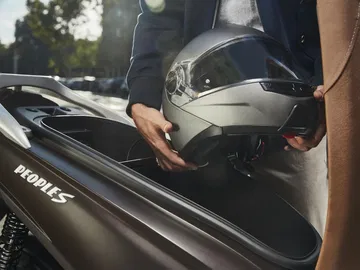 Con unas dimensiones bastante manejables y un peso en orden de marcha de 130 kg, la renovada Kymco People S no pretende convertirse en la reina de las calles sino más bien ser el medio de transporte fiable y sencillo que te lleve a todos los sitios sin problemas. Su buena capacidad de carga es otra gran virtud para el día a día.