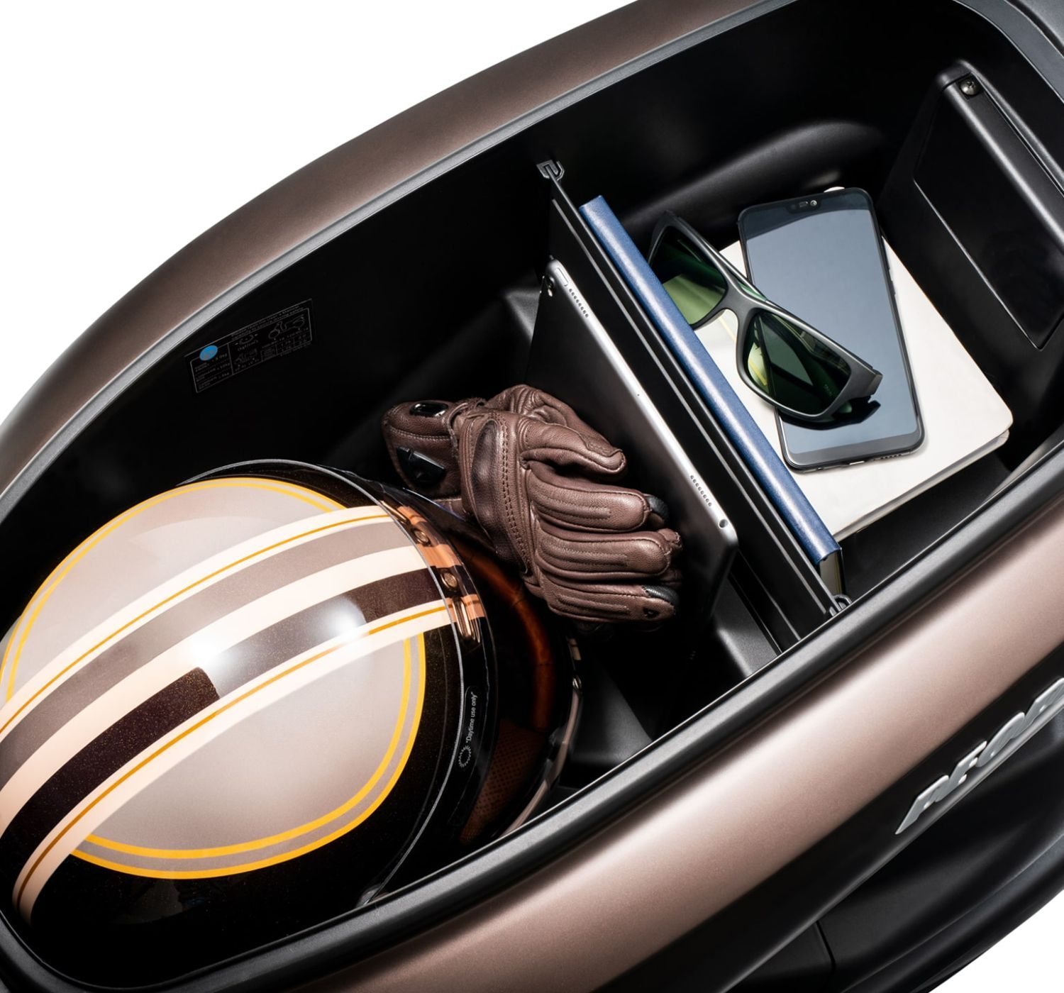 Otros elementos que son de serie en la Kymco Peolpe S 125 MY 2025 son la guantera tras el escudo, gancho porta bolsas, amplio hueco bajo el asiento para un casco y más cosas, instrumentación digital, parrilla trasera, Top Case (de regalo), pata lateral, caballete central, estriberas abatibles, etc.