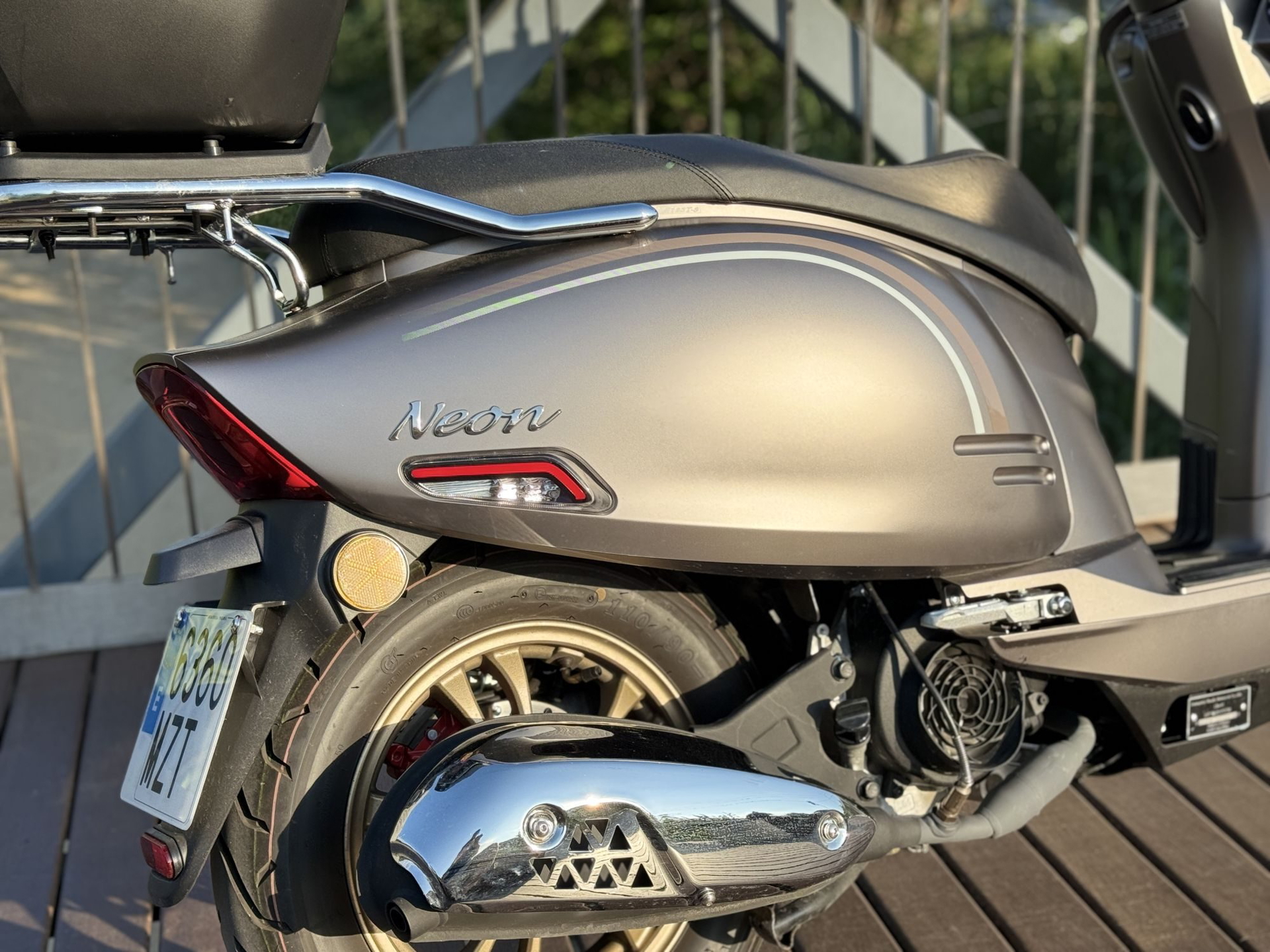 Es muy interesante el precio promocional de lanzamiento de esta nueva LETBE Neon 125 cc que por tiempo limitado se queda en los 2.390 € (incluye una promoción de 200 €). Además para terminar de conquistarte te la entregan con un Top Case de 35 litros que combina con el color de la carrocería.