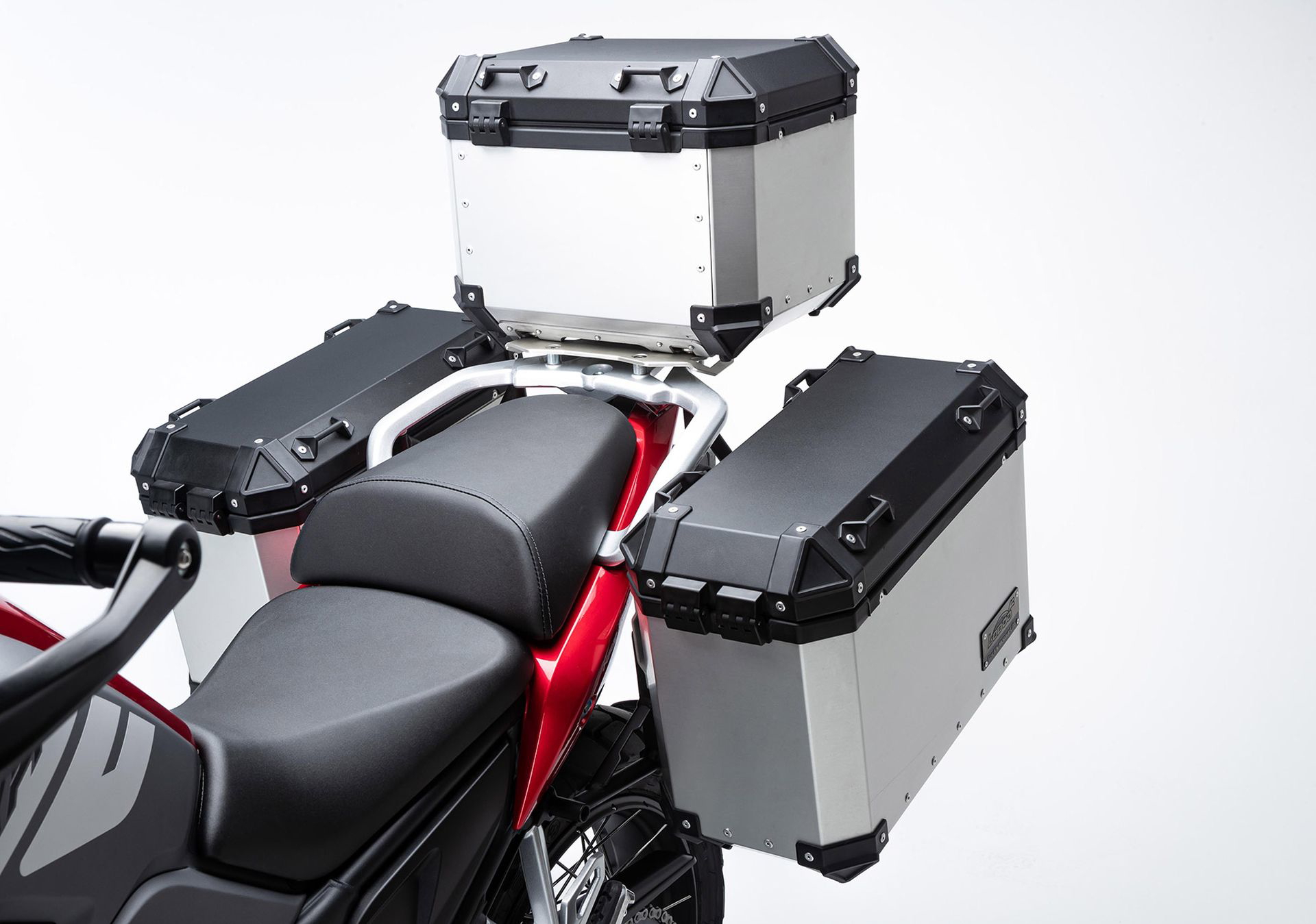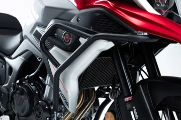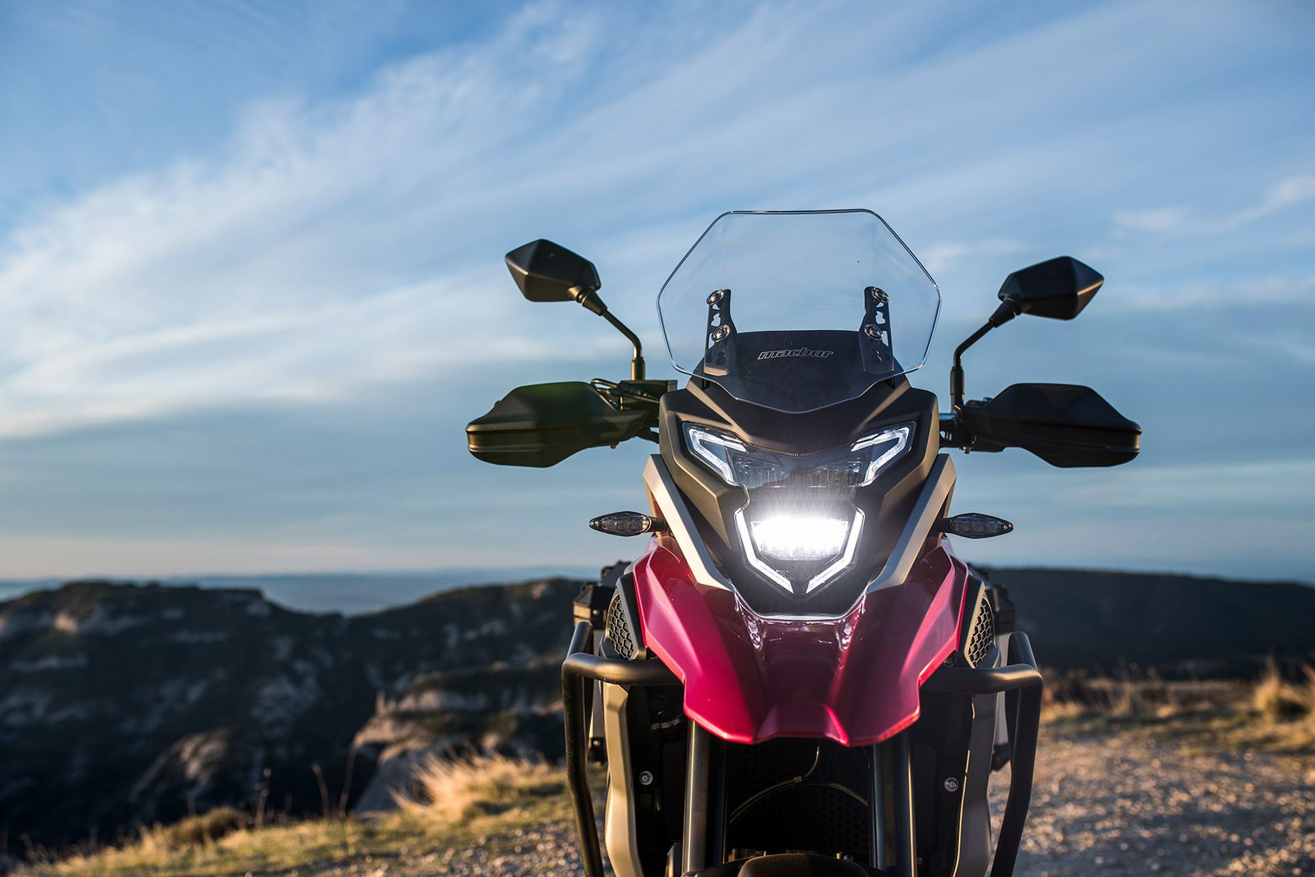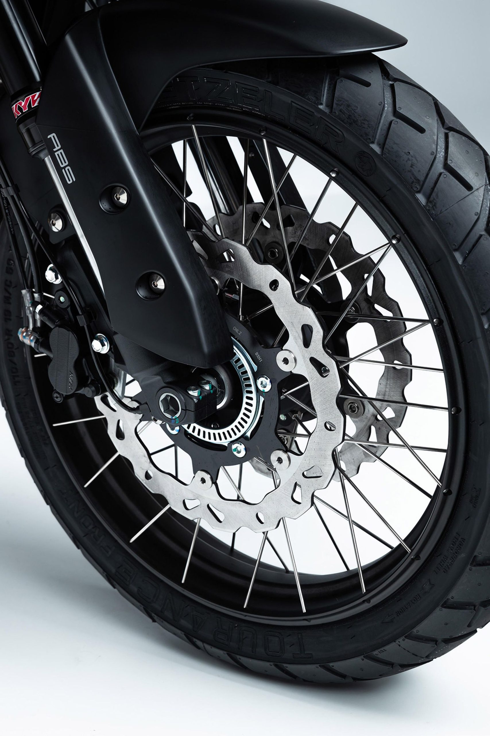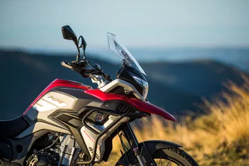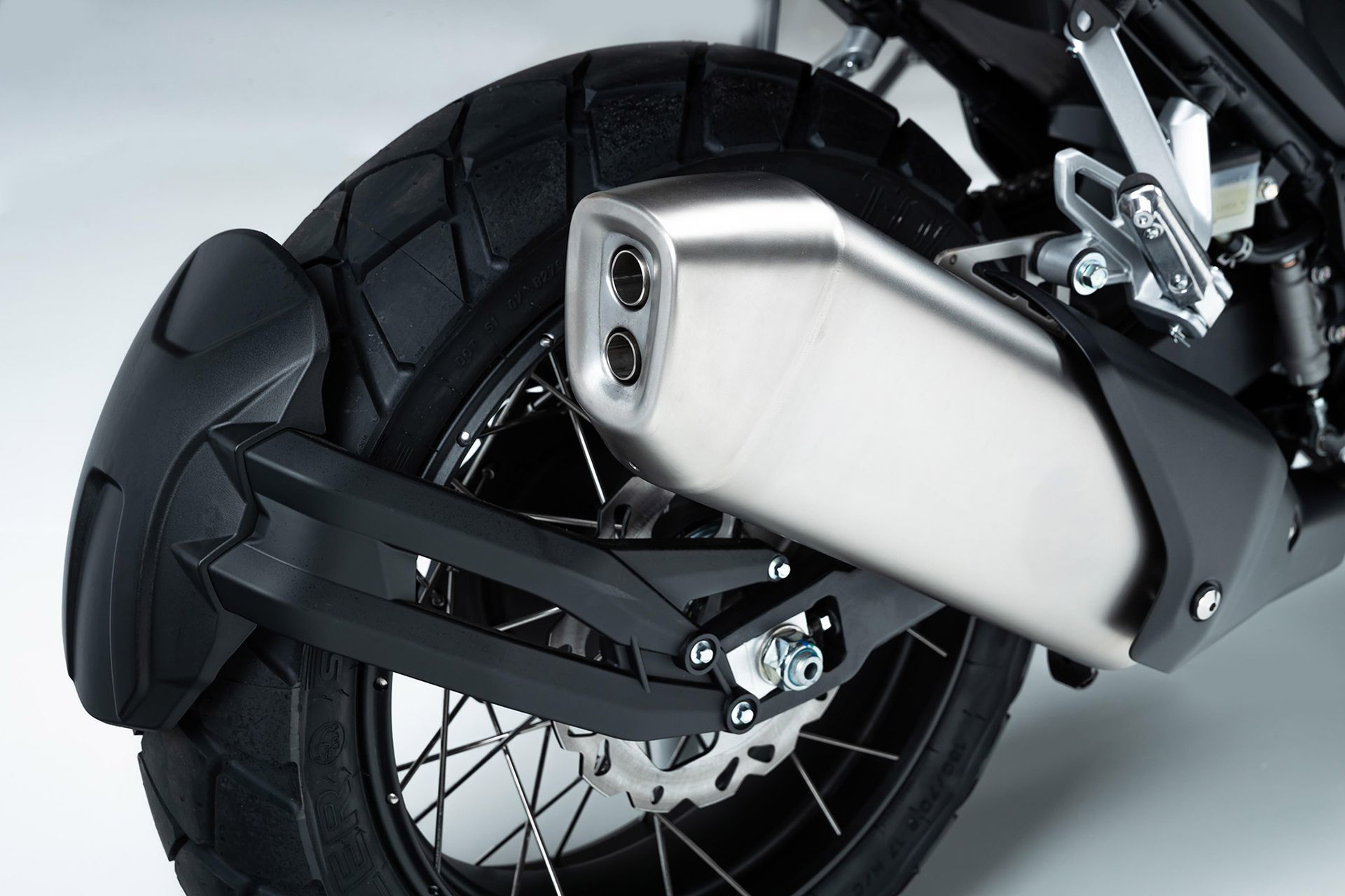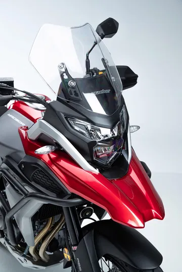 Lleva dos discos de freno delanteros de 298 mm de diámetro, y un disco trasero de 240 mm, además de contar con ABS de doble canal. No obstante, no cuenta con control de tracción, algo que sí está presente en rivales como la Voge 525DSX. Más evidencias de su vocación aventurera están en las protecciones para el motor y cambio, una estructura tubular anticaída o los protectores para puños y horquillas – si la moto se cae, que sean estas piezas las que reciban el impacto.