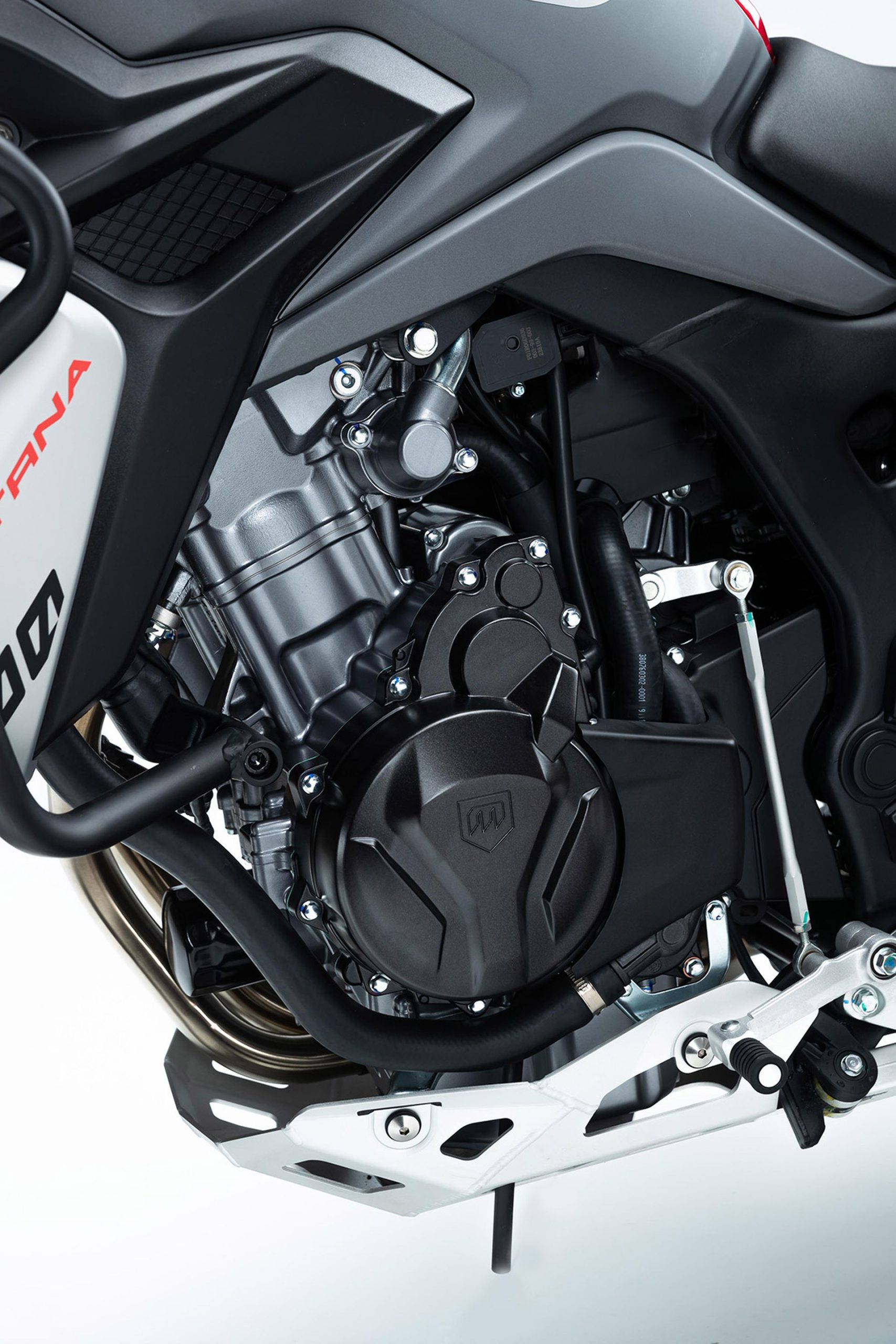 Es una moto dotada con un propulsor bicilíndrico de clara «inspiración» Honda: aunque está fabricado en China, sus dimensiones internas (carrera, diámetro) y relación de compresión son idénticas. También es idéntica su potencia de 47,5 CV a la que tenemos en una Honda CB500X. Lo positivo es que este propulsor, de cuatro válvulas por cilindro y refrigeración líquida, está probado hasta la saciedad. Presume de un consumo medio muy contenido, de 3,6 l/100 km.