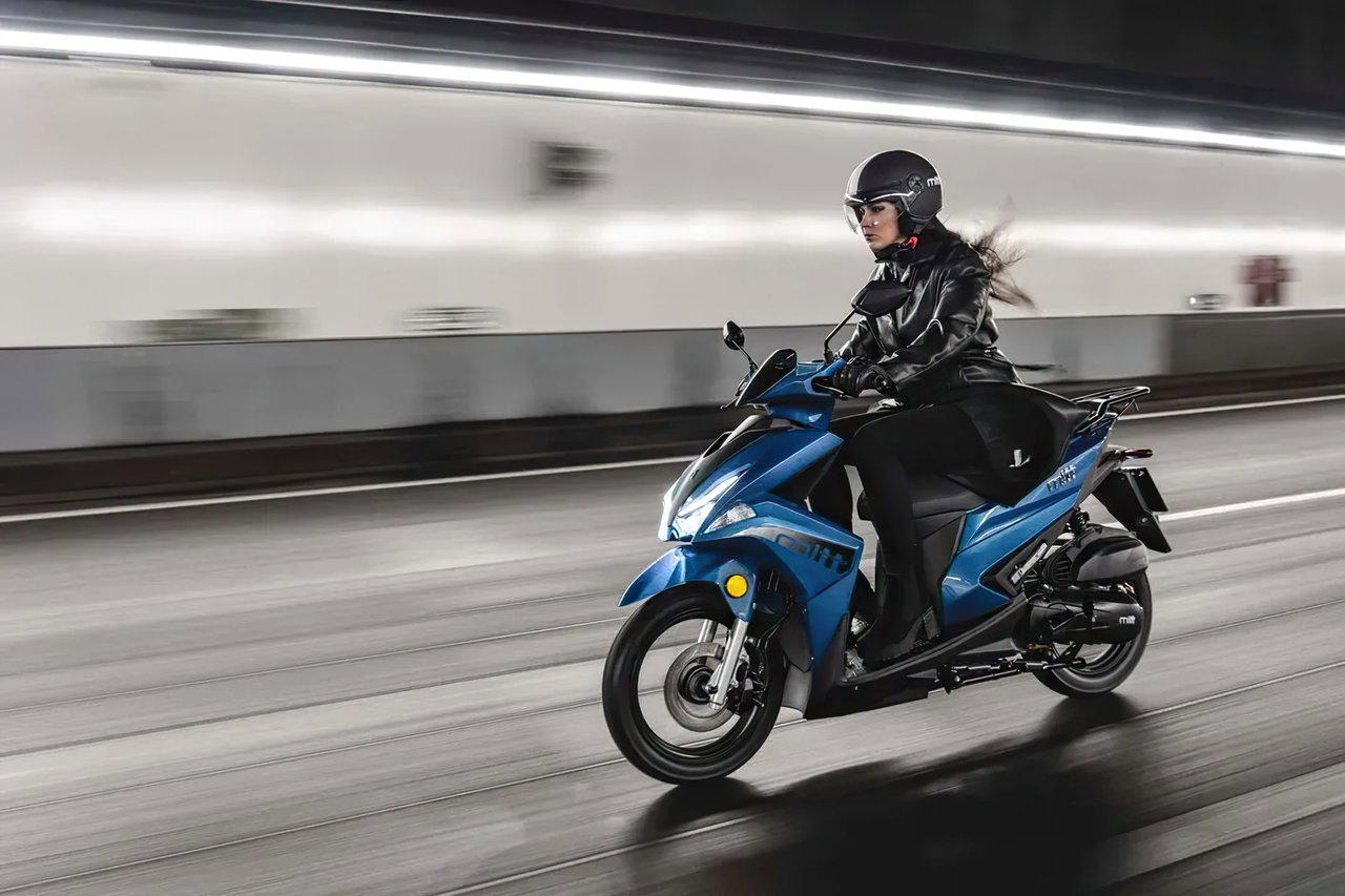 Es un scooter ligero y manejable gracias a su tamaño compacto. Su estrechez la hace ideal para «ratonear» y ser, por ejemplo, buena herramienta de repartidor. Viene con portabultos, iluminación LED y se puede conseguir en azul, gris o blanco.