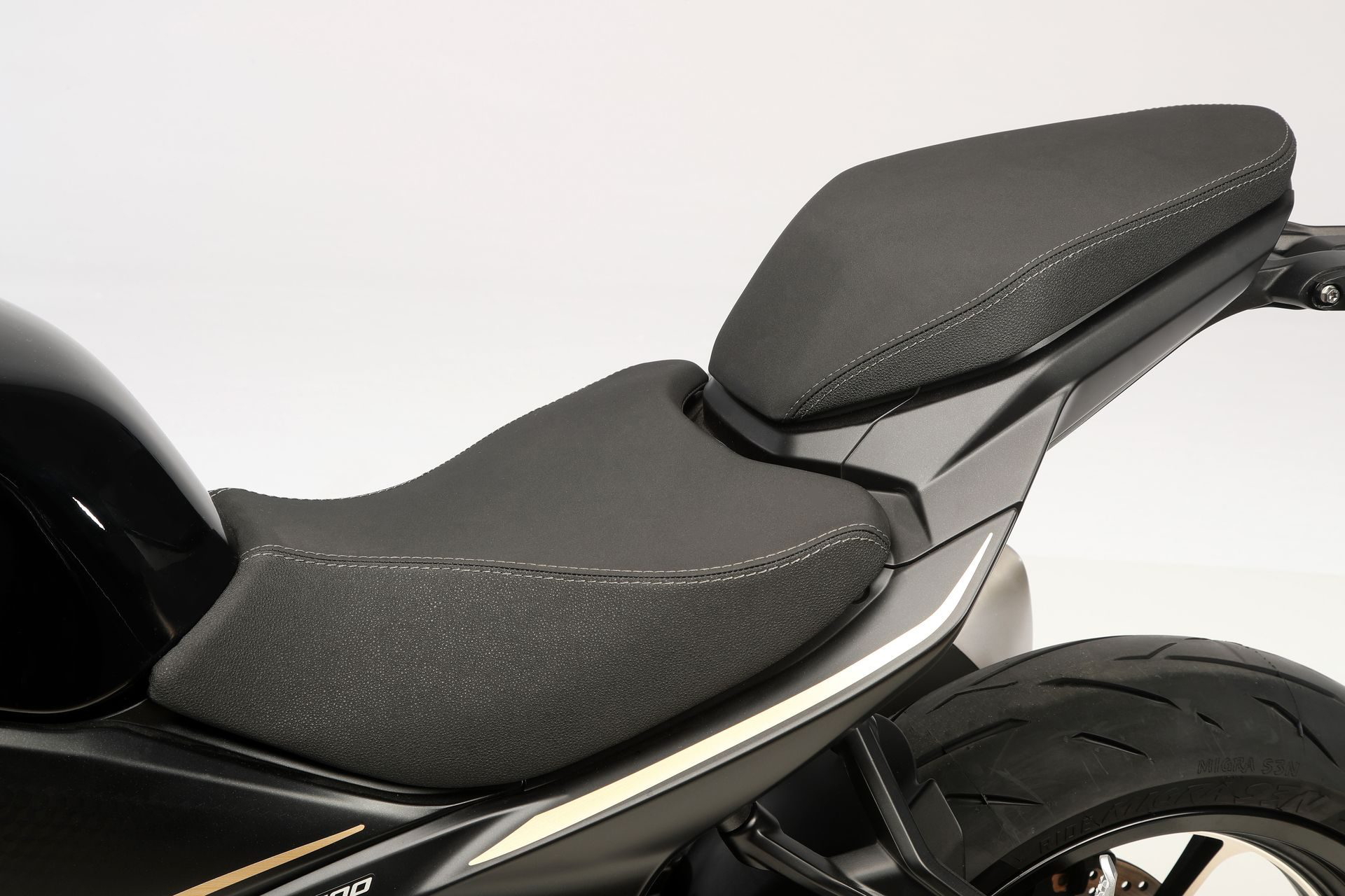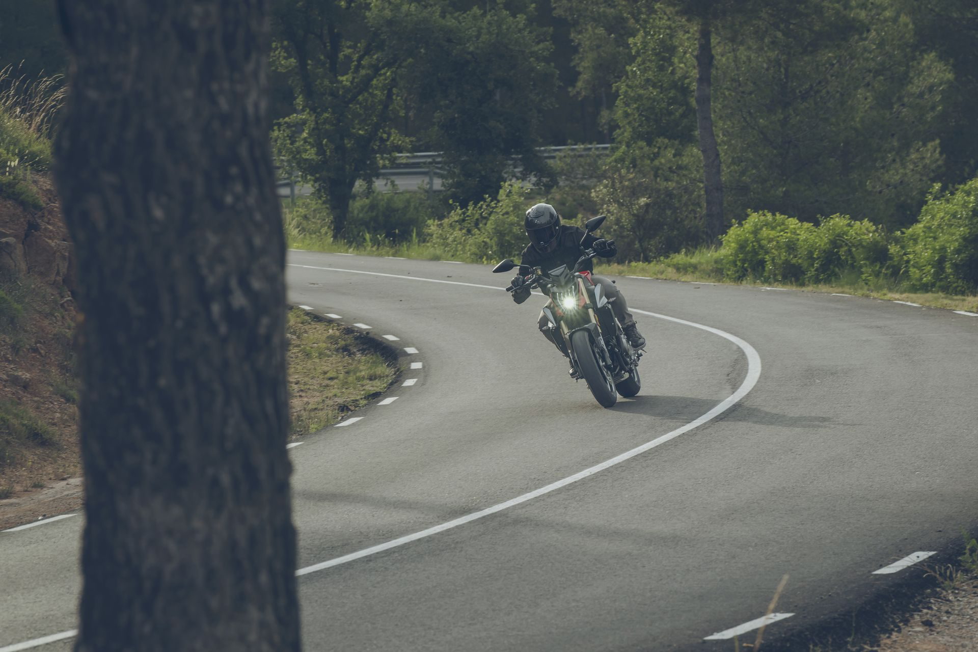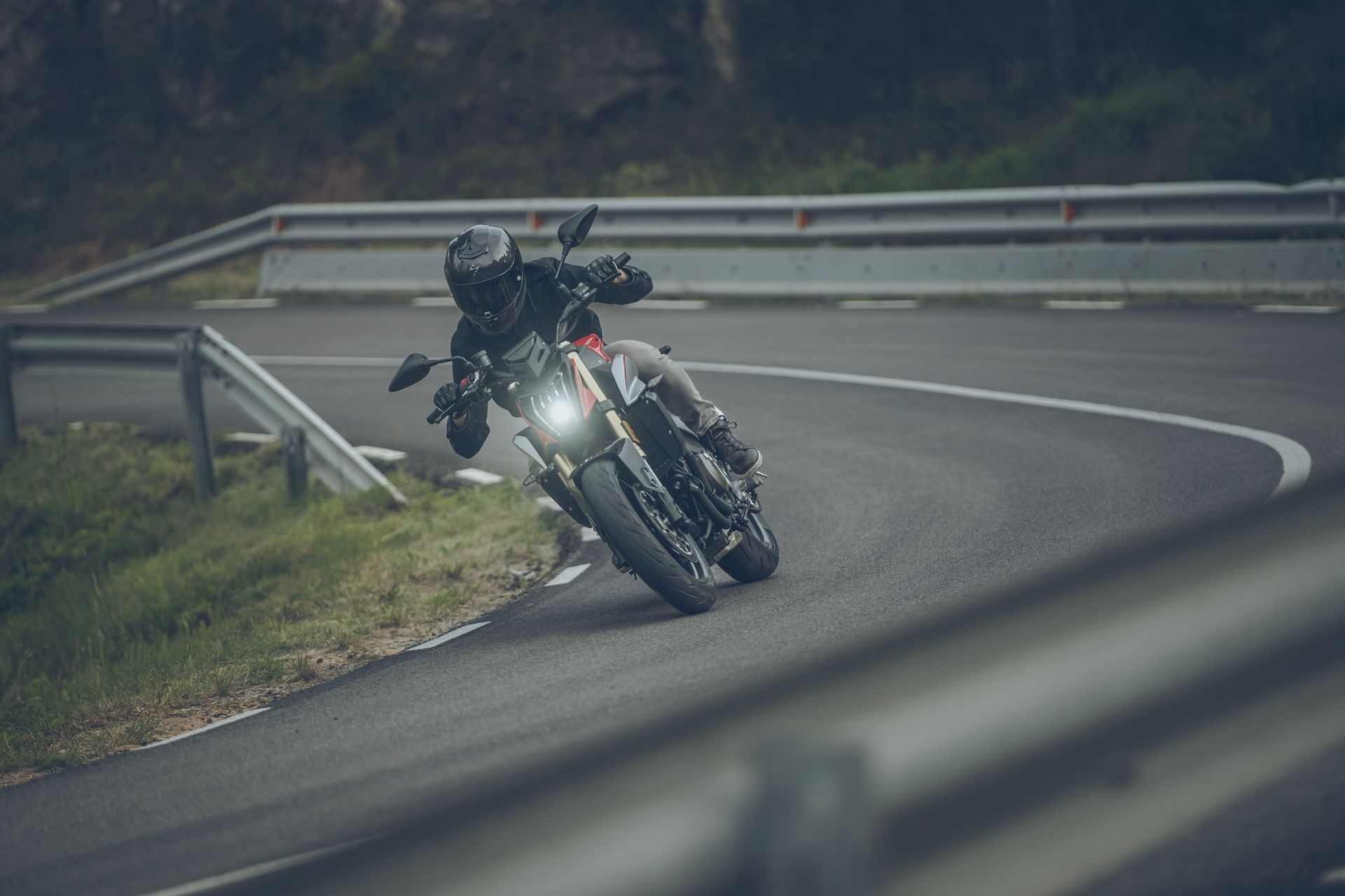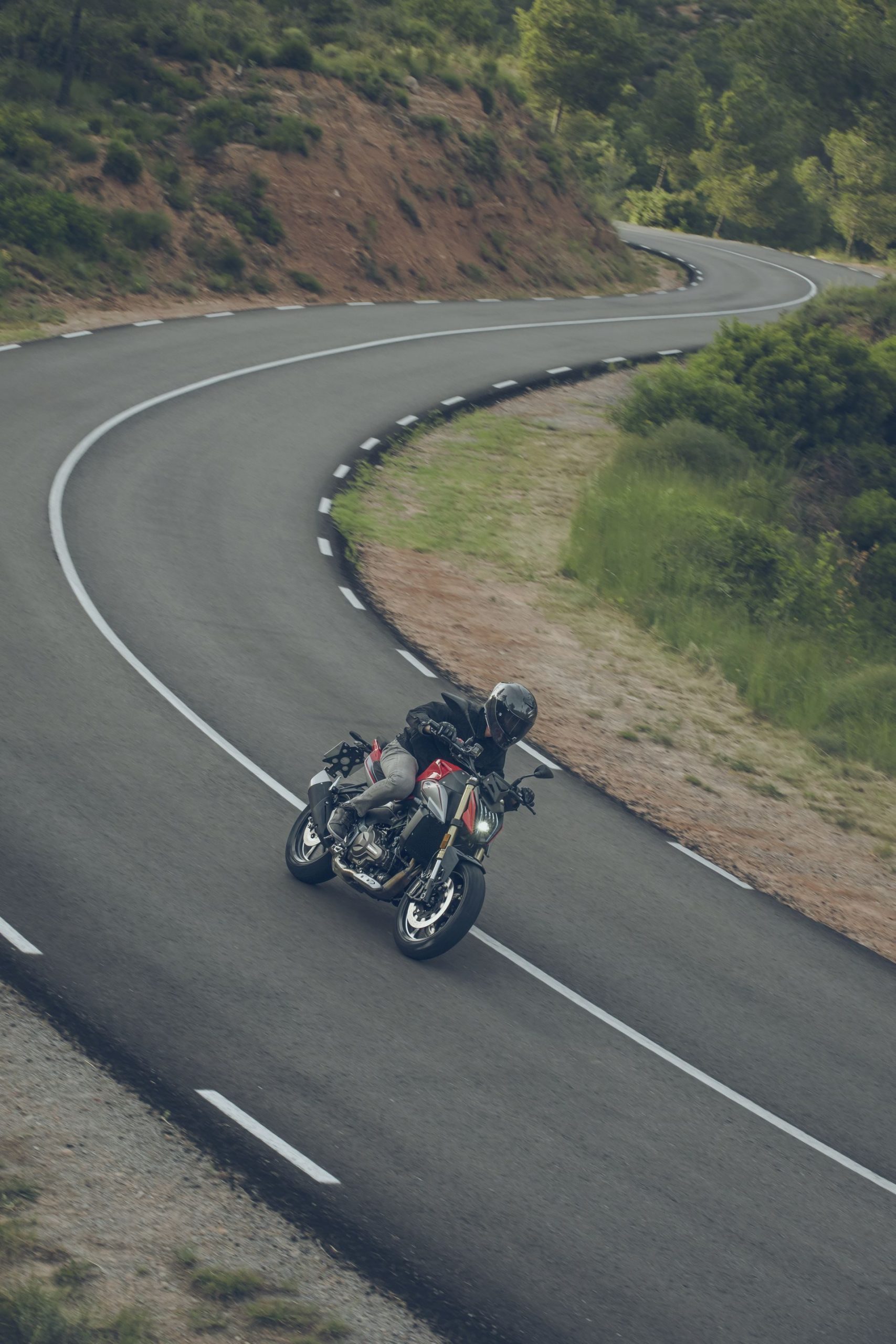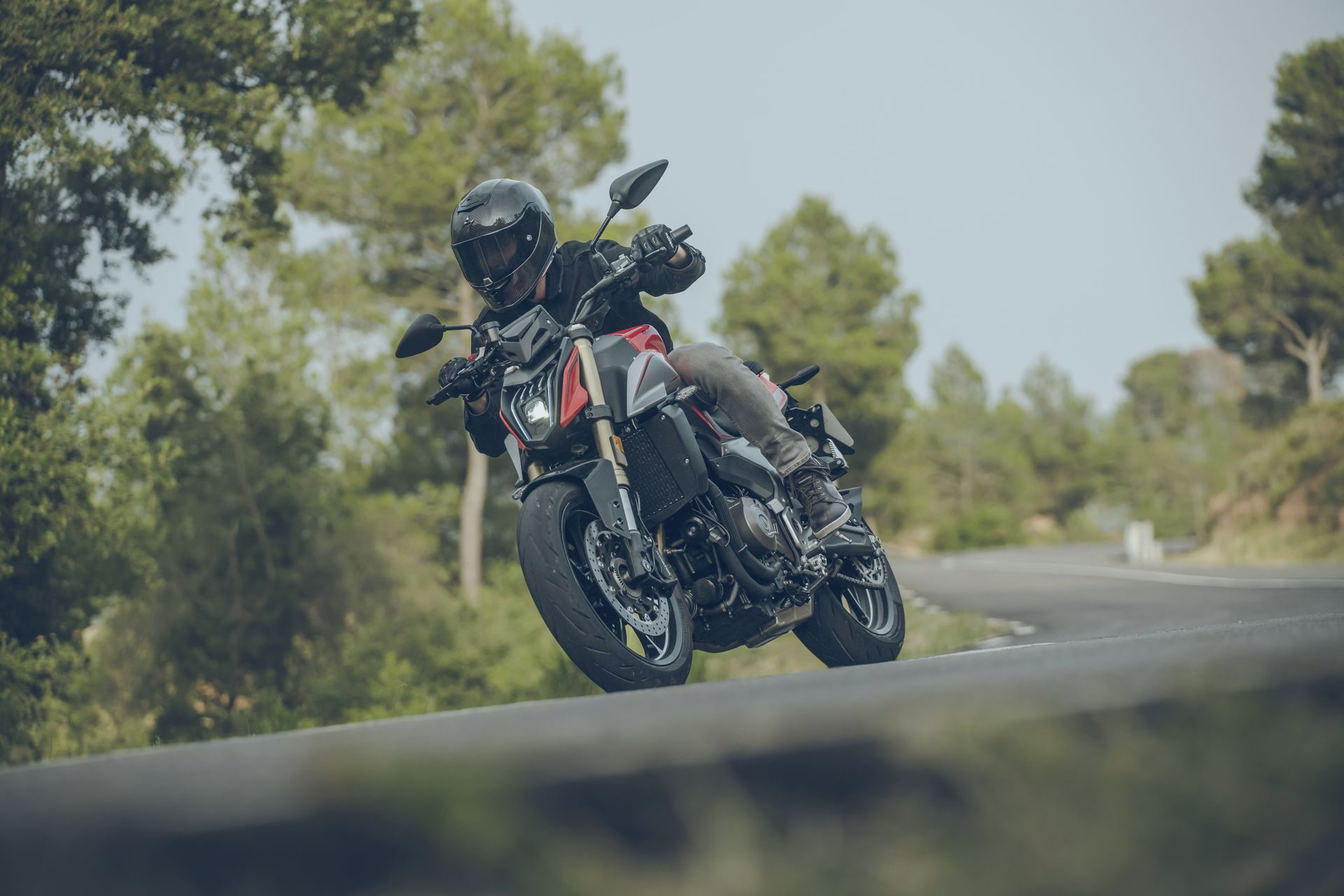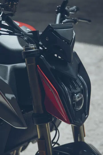 El apoyo al pilotaje se lleva a cabo mediante ABS de doble canal, control de tracción desconectable y modos de conducción Sport y Estándar.