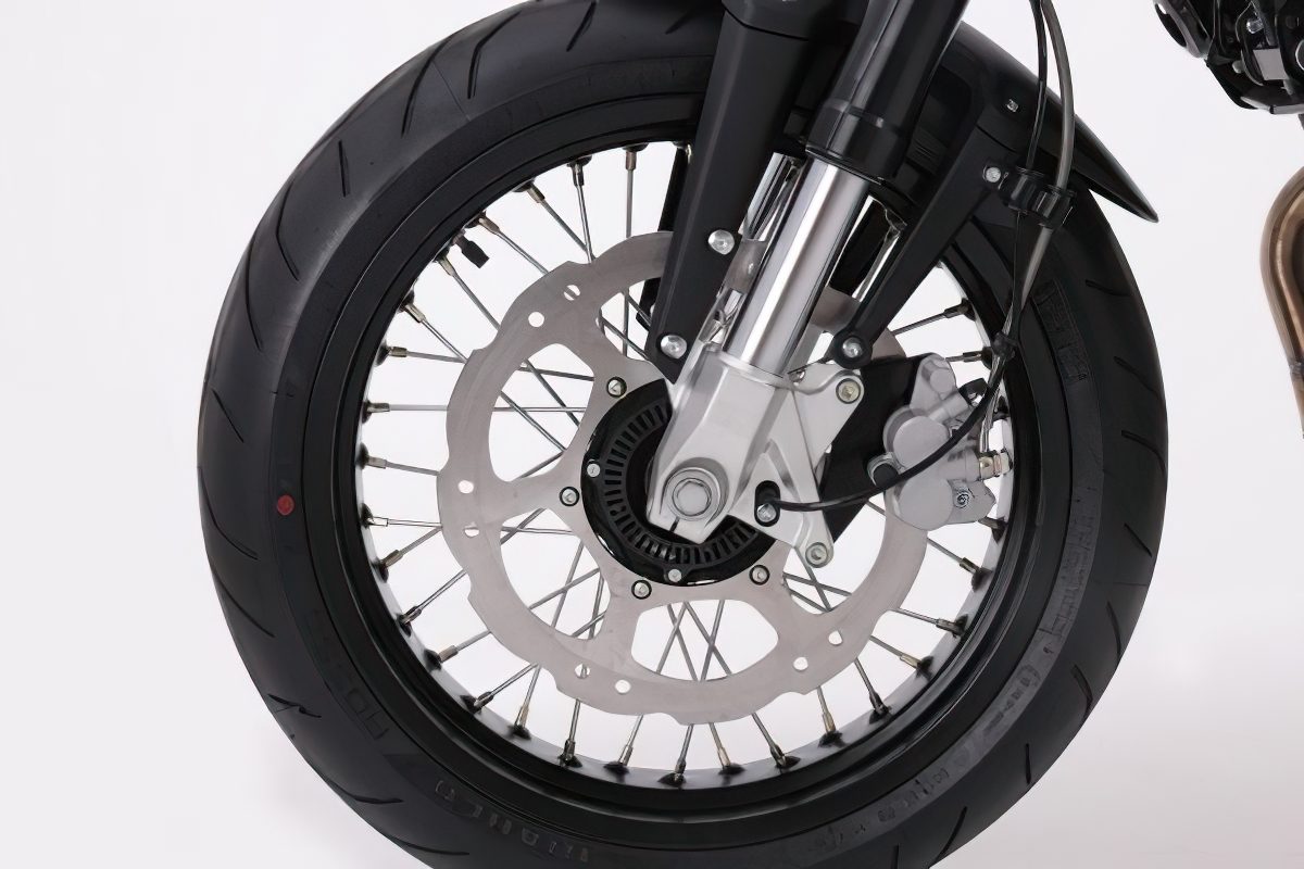 Tenemos opción ABS o CBS, siendo esta última la que baja de los 2000€ en el precio. Las llantas de radios de 17″ y neumáticos mixtos Pirelli, le dan un aire que incita a salirse del asfalto para aventurarse en pistas y caminos.