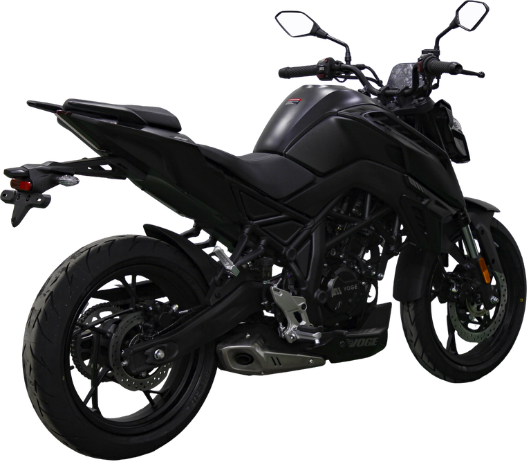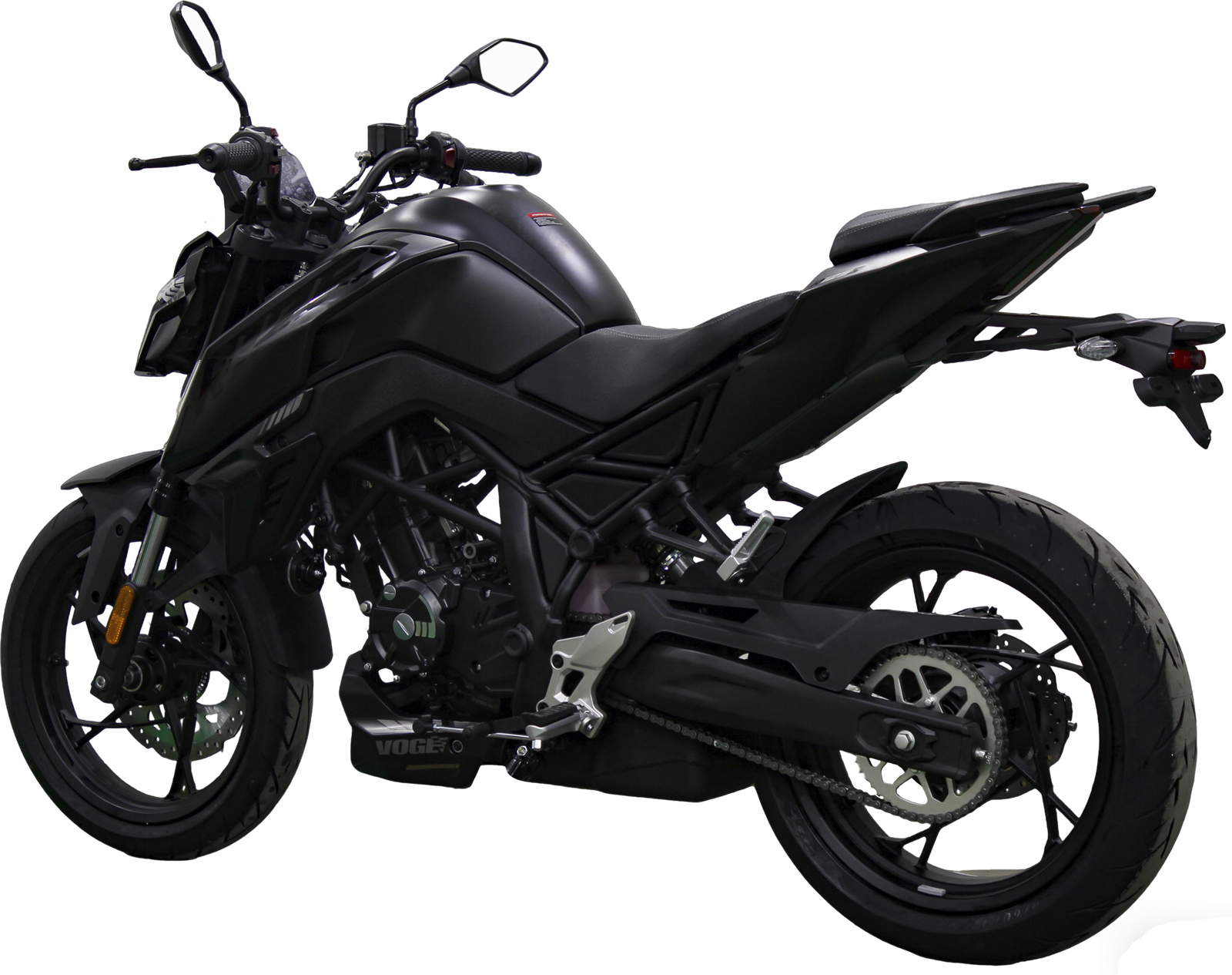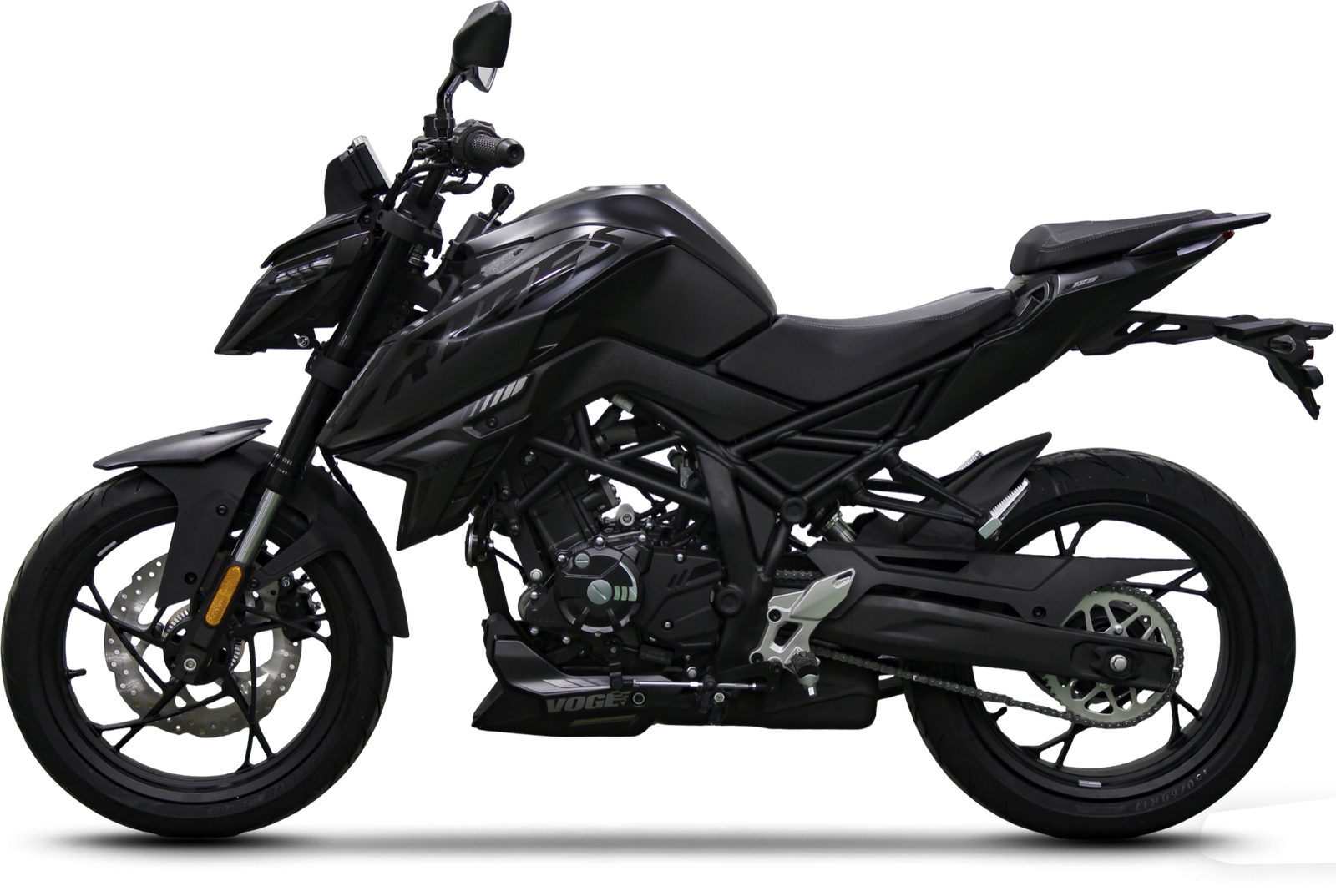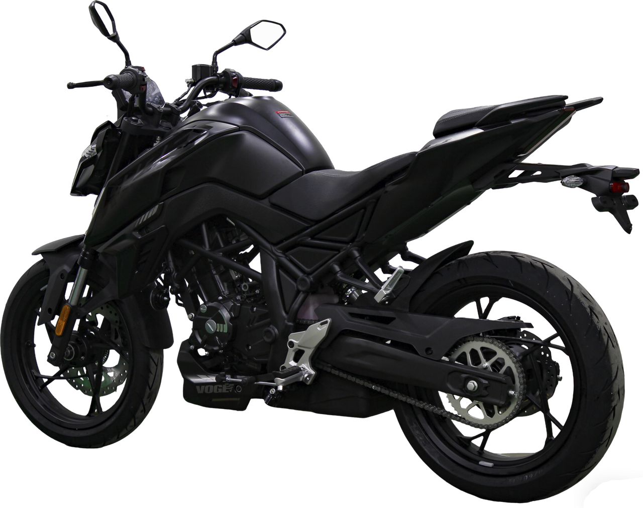 Voge la presenta como una naked más grande que su hermana de gama, la 125R, lo cual ya destaca a simple vista, con un depósito generoso, del que hablaremos más adelante y una rueda trasera ancha, de la cual también os hablaremos a continuación.