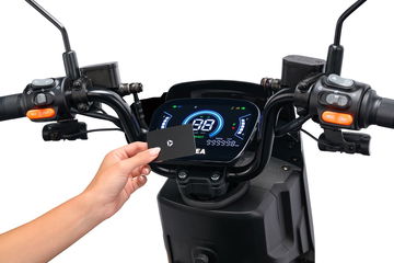 Gracias a sus llantas de 12 pulgadas y un peso pluma, es una moto extremadamente ágil – es casi una bicicleta crecida – tanto en movimiento como en parado. Dicho sea de paso, dispone de pata de cabra y caballete central, además de una plataforma trasera en la que podemos montar un baúl, o una caja de transporte. La información al conductor se centraliza en una sencilla pantalla LCD, y es posible conectar el GFX a la app de Yadea mediante Bluetooth. Además, mediante una tarjeta, podemos pilotar el vehículo sin necesidad de tener la llave en el contacto.