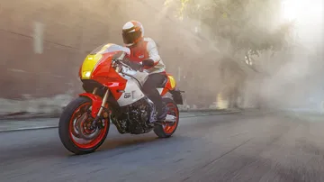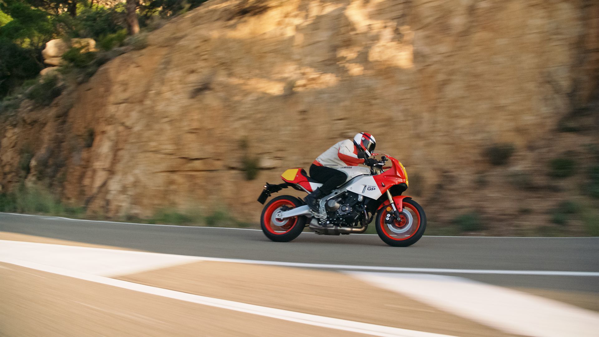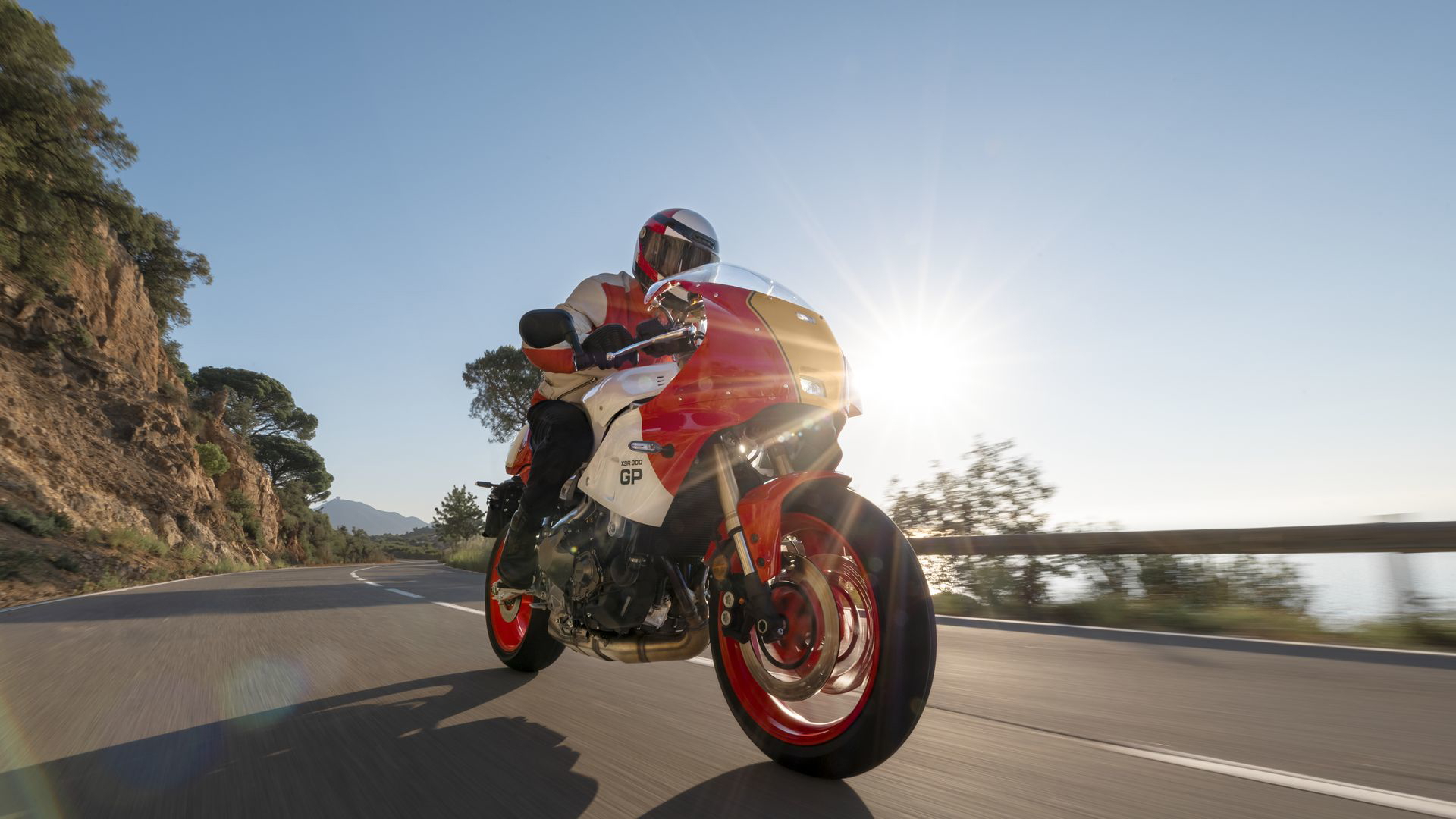 Esa moto es la Yamaha XSR900 GP, la última en llegar a la familia Sport Heritage de Yamaha, compuesta por motos neoretro. La versión GP se suma a la XSR900 «a secas» como alternativa retro, pero en verdad, comparte mecánica, chasis y motor con la XSR900. La Yamaha XSR900 GP es una moto más deportiva que la XSR900, y eso es patente en su semicarenado, pero también en su postura de pilotaje: aun teniendo prácticamente la misma altura del asiento al suelo, su manillar es más bajo, y sus semimanillares están mucho más inclinados.