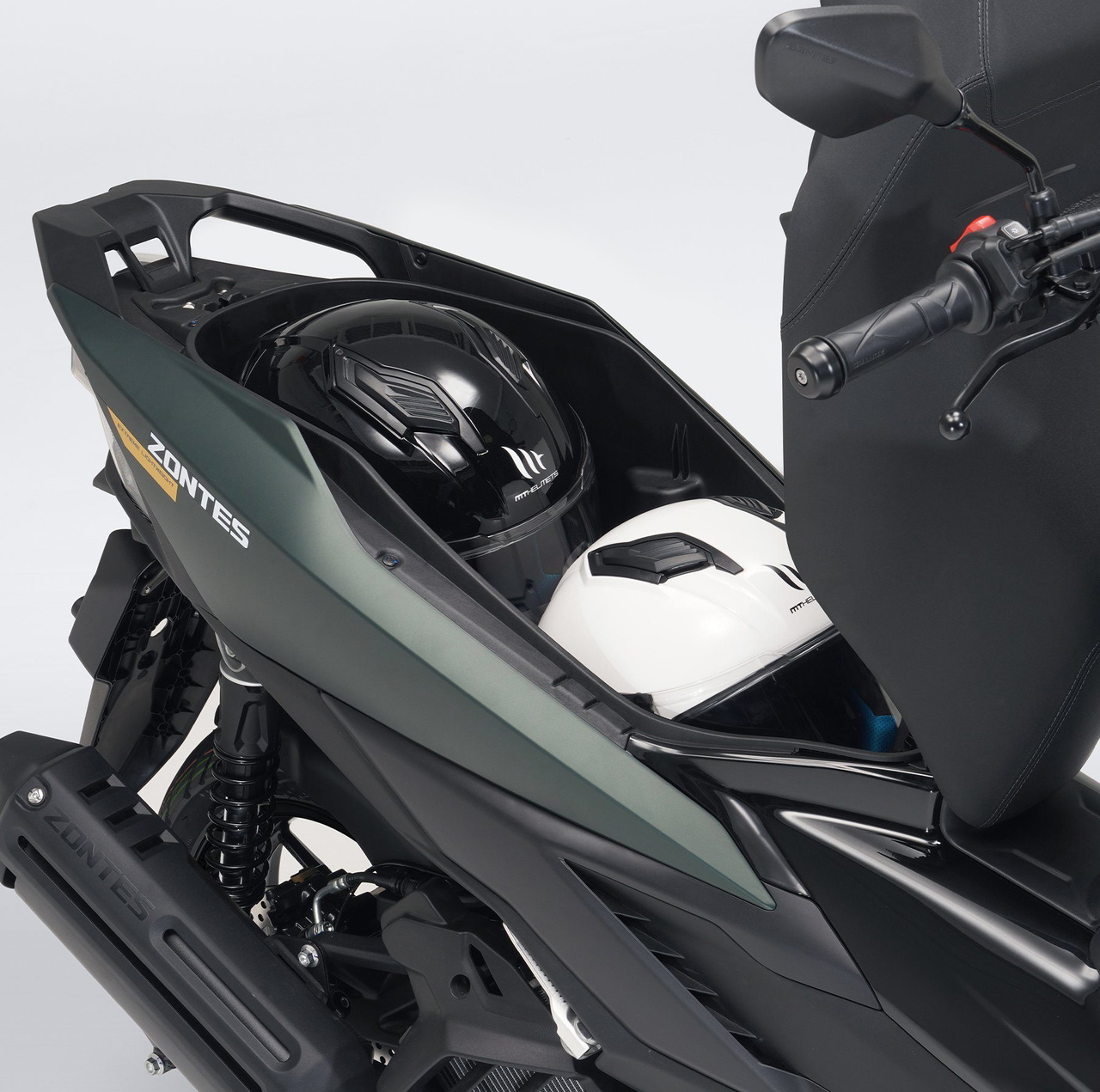 Como os decíamos, el objetivo de Zontes pasaba primordialmente por conseguir un scooter muy ligero, lo cual debería traducirse en agilidad, en eficiencia y, por si no fuera poco, en prestaciones, porque el siguiente punto a su favor llega con una mecánica de 15 CV, justo en el límite de la categoría.
