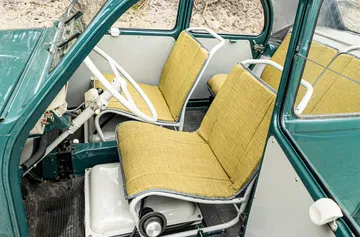 Pesaba solo 260kg que un 2CV normal, sumando solo 735kg en total. Esto y su tamaño reducido le permitía afrontar pendientes del 40% y moverse por la arena como quería. Pero todo tiene un coste. Y aunque seguía siendo barato para lo que ofrecía, era el doble que un 2CV de siempre.