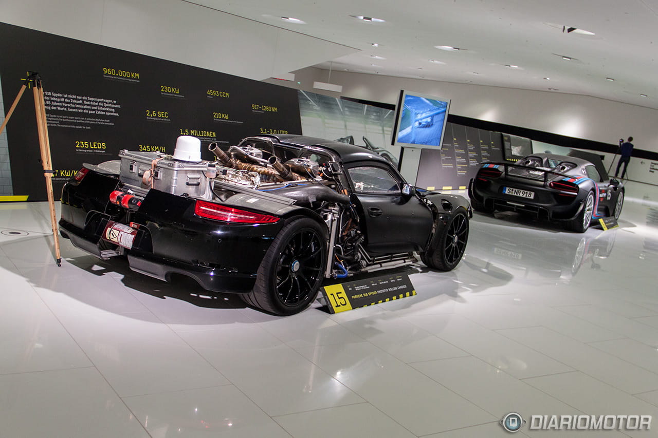 Por último, Porsche nos muestra un coche semidesnudo, prácticamente en el chasis, con el que en 2012 ya comenzaron a mostrar cómo sería el Porsche 918 Spyder, y su tecnología híbrida, a los periodistas. El Porsche 918 Spyder finalmente llegaría a los concesionarios, convirtiéndose en uno de los deportivos más especiales que ha lanzado Porsche en los últimos tiempos.