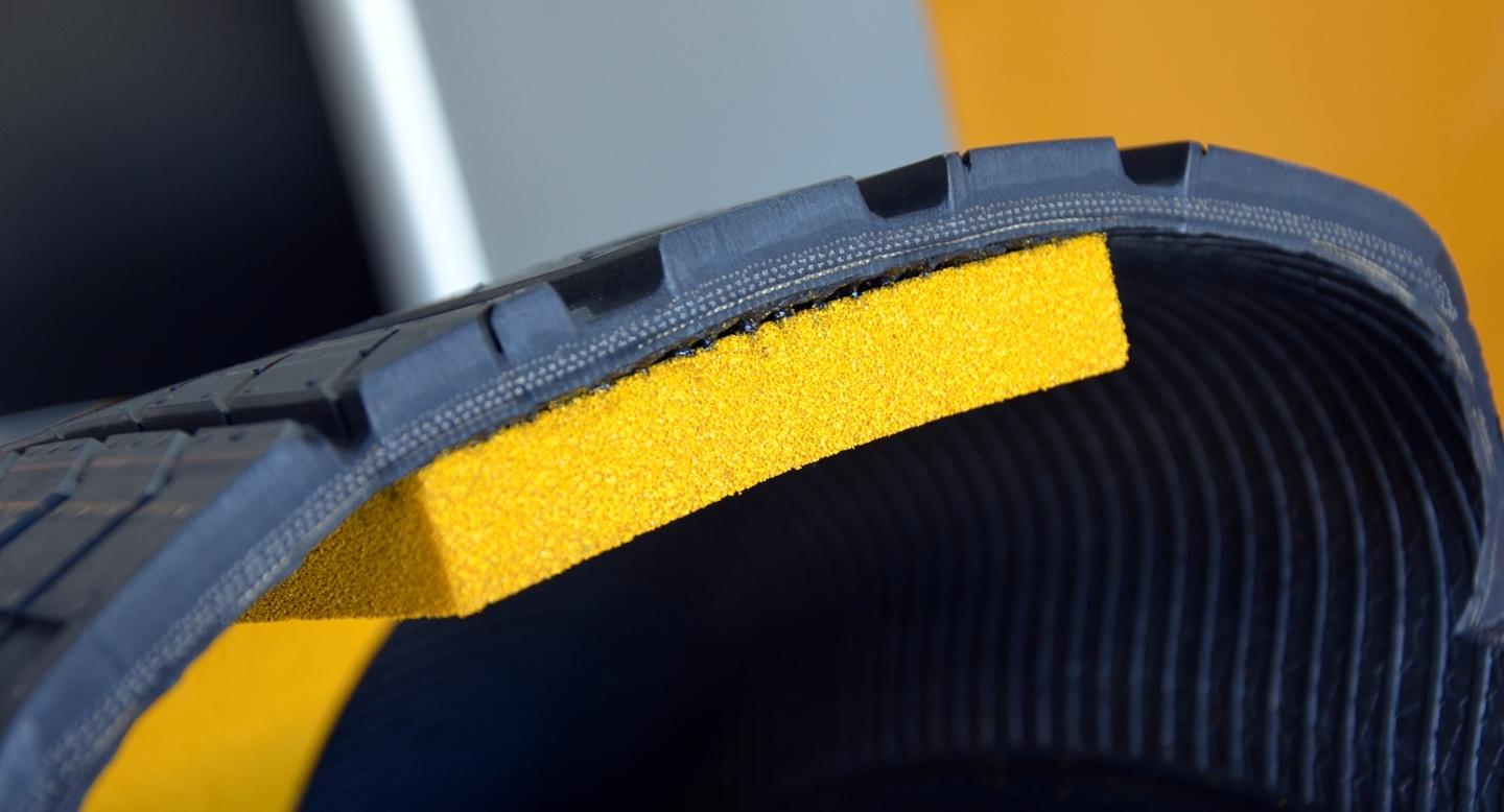 * En este neumático se combinan el polímero antipinchazos y la espuma de poliuretano para absorber ruido