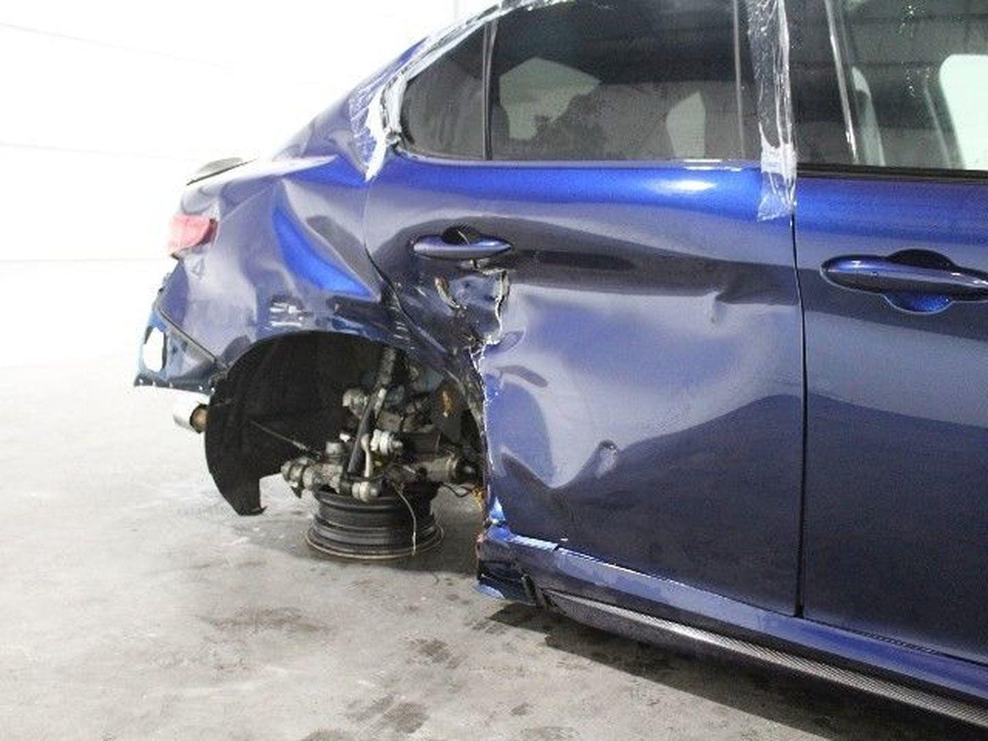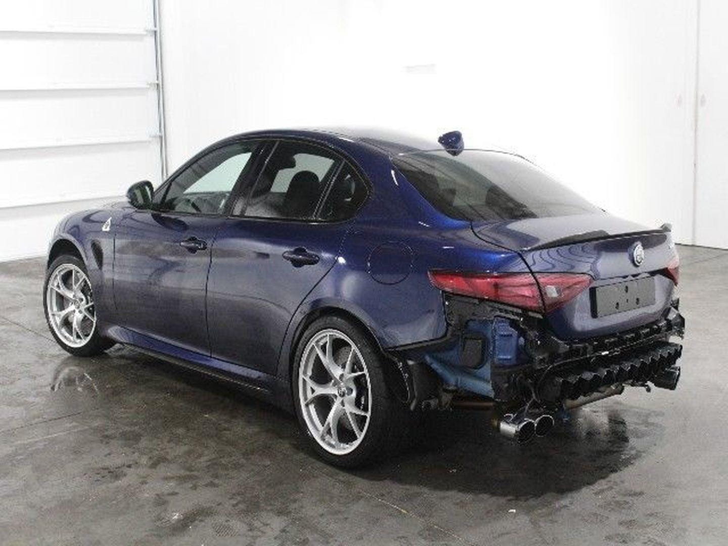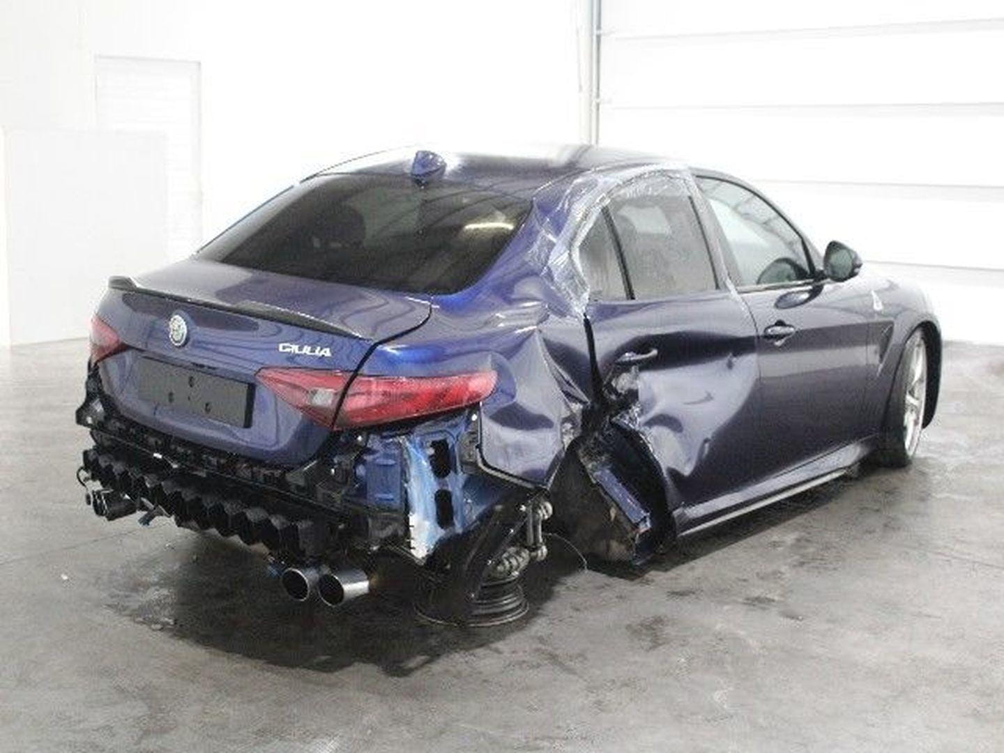 El problema es que este Alfa Romeo Giulia Quadrifoglio parece haber recibido un fuerte impacto en su parte trasera. Un impacto quizá causado por una exhibición fallida de sus habilidades dinámicas con ciertas ayudas electrónicas desconectadas. Quizá este siendo malpensado, pero parece una posibilidad más que plausible. A juzgar por las imágenes, el coche parece haber impactado contra un árbol, una farola… un objeto vertical relativamente estrecho. El impacto ha provocado daños realmente graves en la zaga.