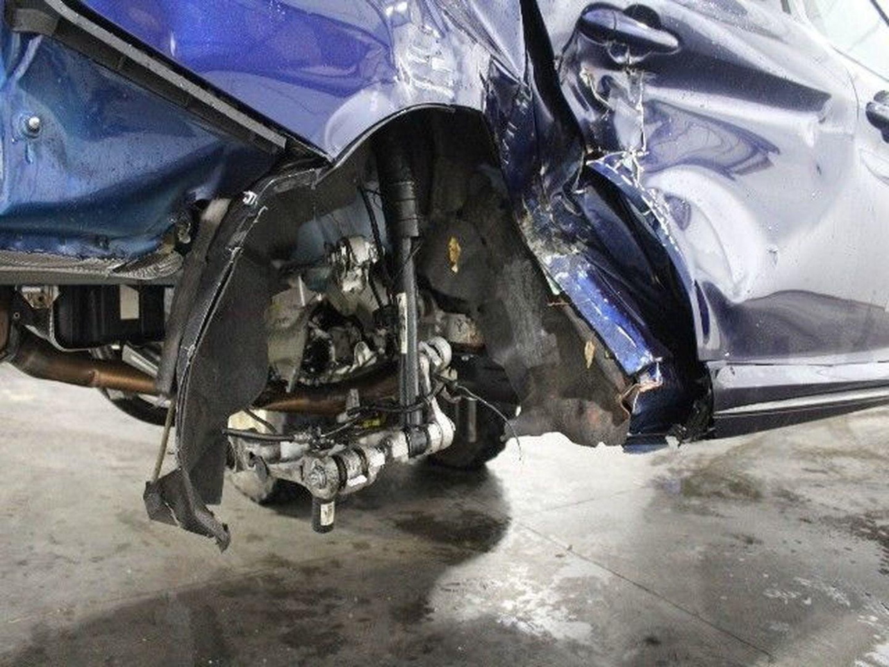 La llanta ha posiblemente fallecido en acto de servicio, y realmente, no me preocupa tanto el impacto recibido por los brazos y palieres traseros, visiblemente afectados por el impacto. Lo que me preocupa es que el chasis se haya doblado. Además de ser una reparación complicada, posiblemente afecte al resto de la vida del coche. Como se suele decir, «el coche no quedará igual que estaba». Los airbag de cortina traseros se han desplegado, y a la carcasa del diferencial trasero le faltan trozos. Puede que haya más sufrimiento en otros puntos del subchasis.