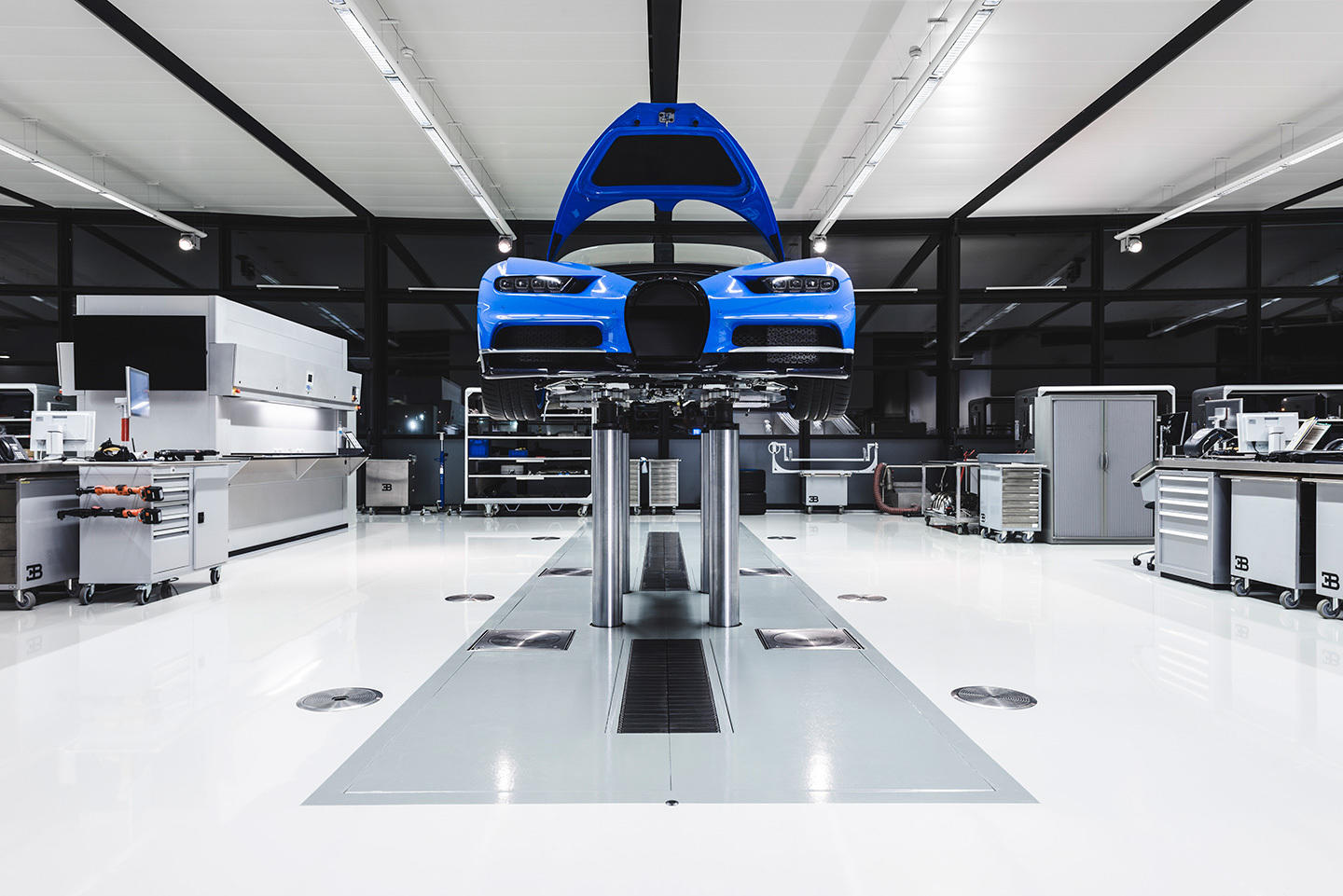 No deja de sorprendernos la pulcritud de los espacios empleados, sin una gota de aceite, en un recinto enclavado en una pradera de Molsheim, en la región francesa de Alsacia. Si estás habituado al ambiente frenético y ruidoso de una fábrica de coches convencional, probablemente también te sorprenda la ausencia de robots.