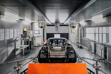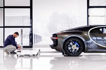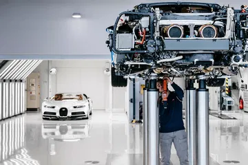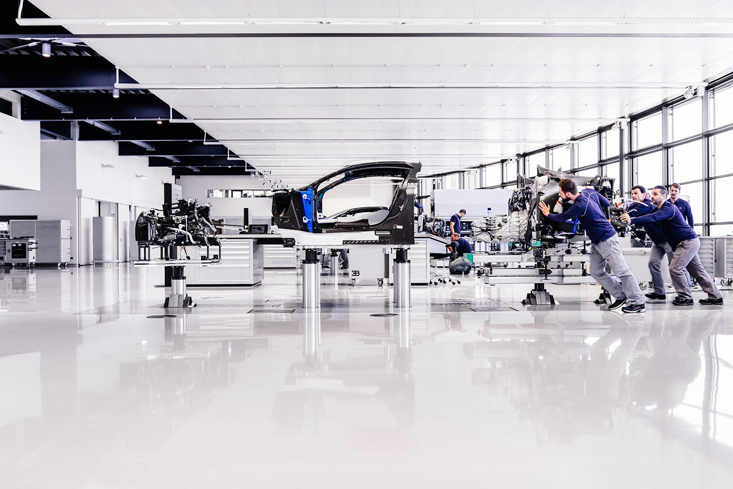Todo el trabajo realizado en la fábrica del Bugatti Chiron se realiza de forma casi artesana, y se prescinde de robots al uso, aún contando, por supuesto, con tecnologías de apoyo avanzadas. De hecho, y tal y como veremos en el vídeo, Christophe Pichon, responsable de producción de Bugatti, prefiere que el atelier del Bugatti Chiron se compare con los talleres de una escudería de Fórmula 1. Y ciertamente se parecen mucho más a un taller de un equipo de competición de primer nivel, que a una fábrica tradicional de coches.