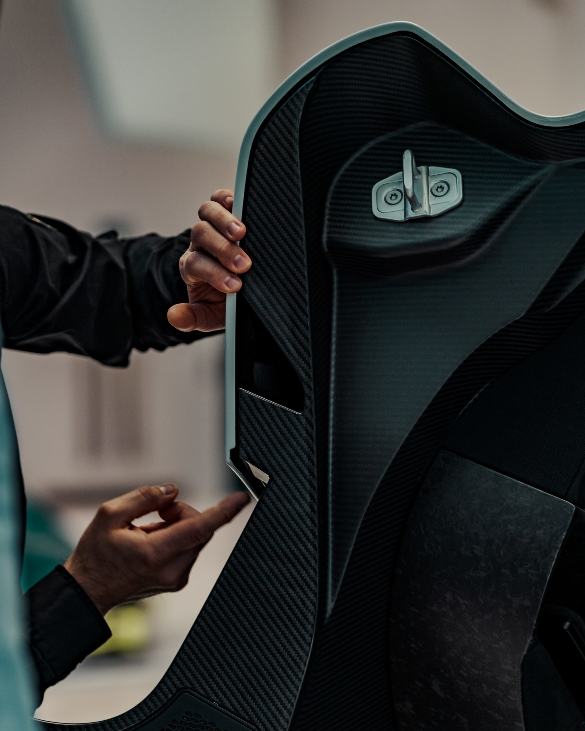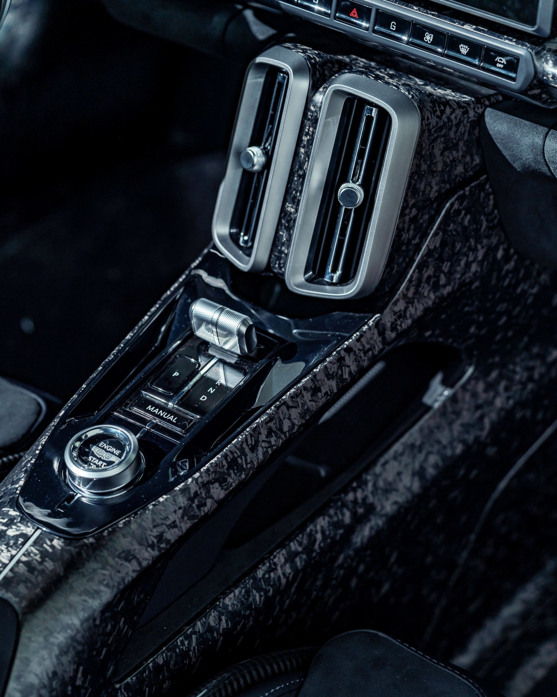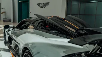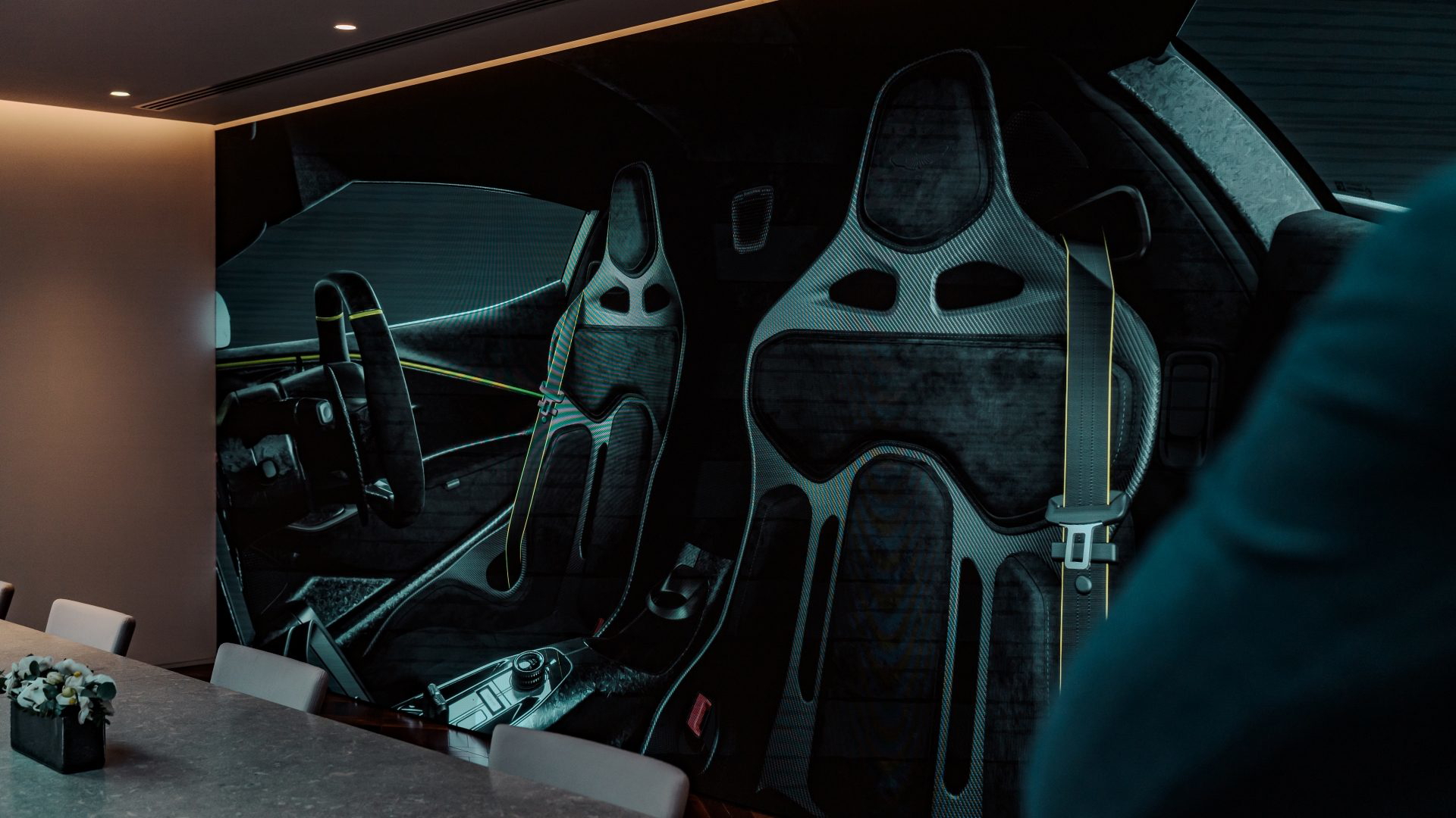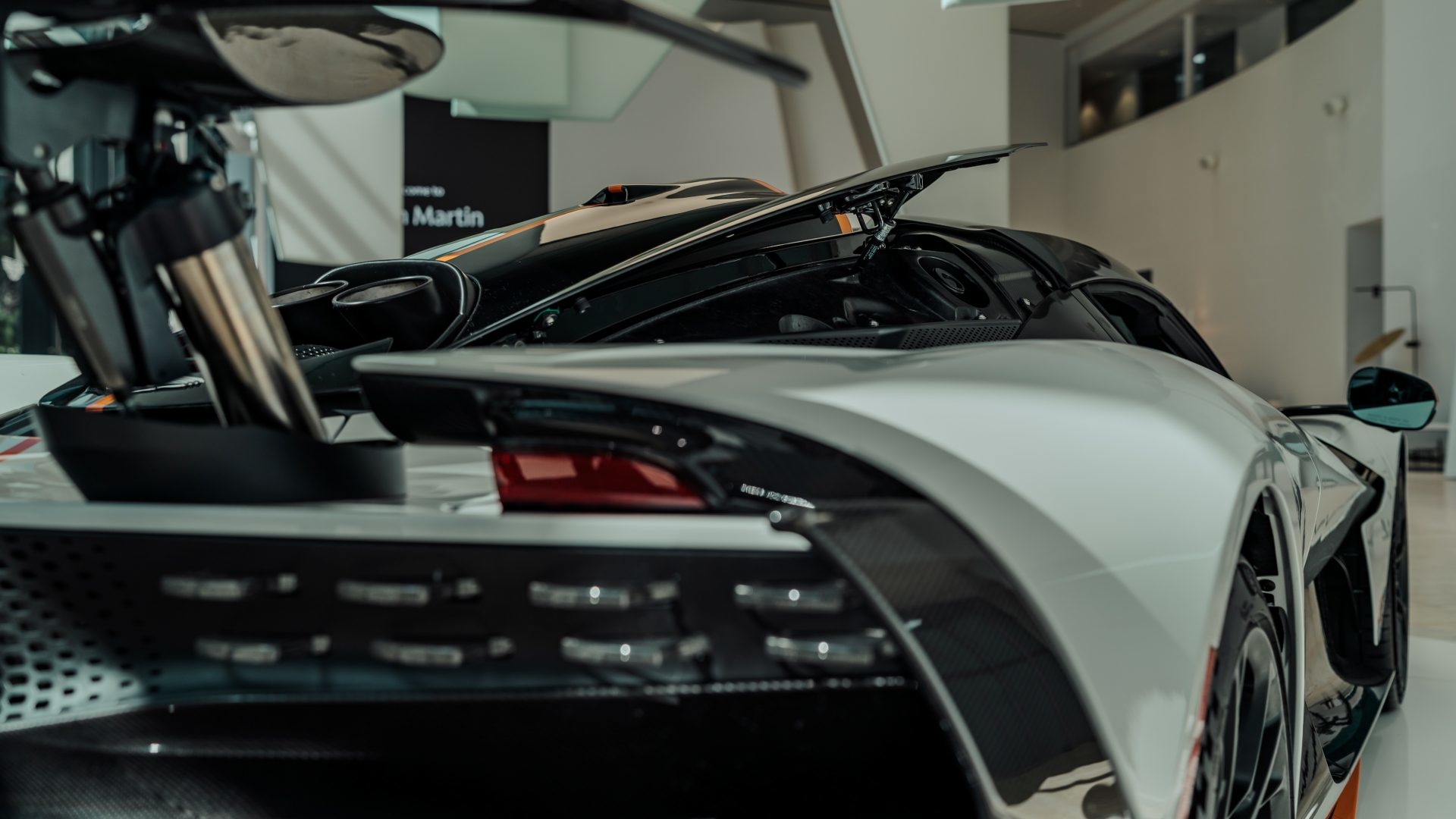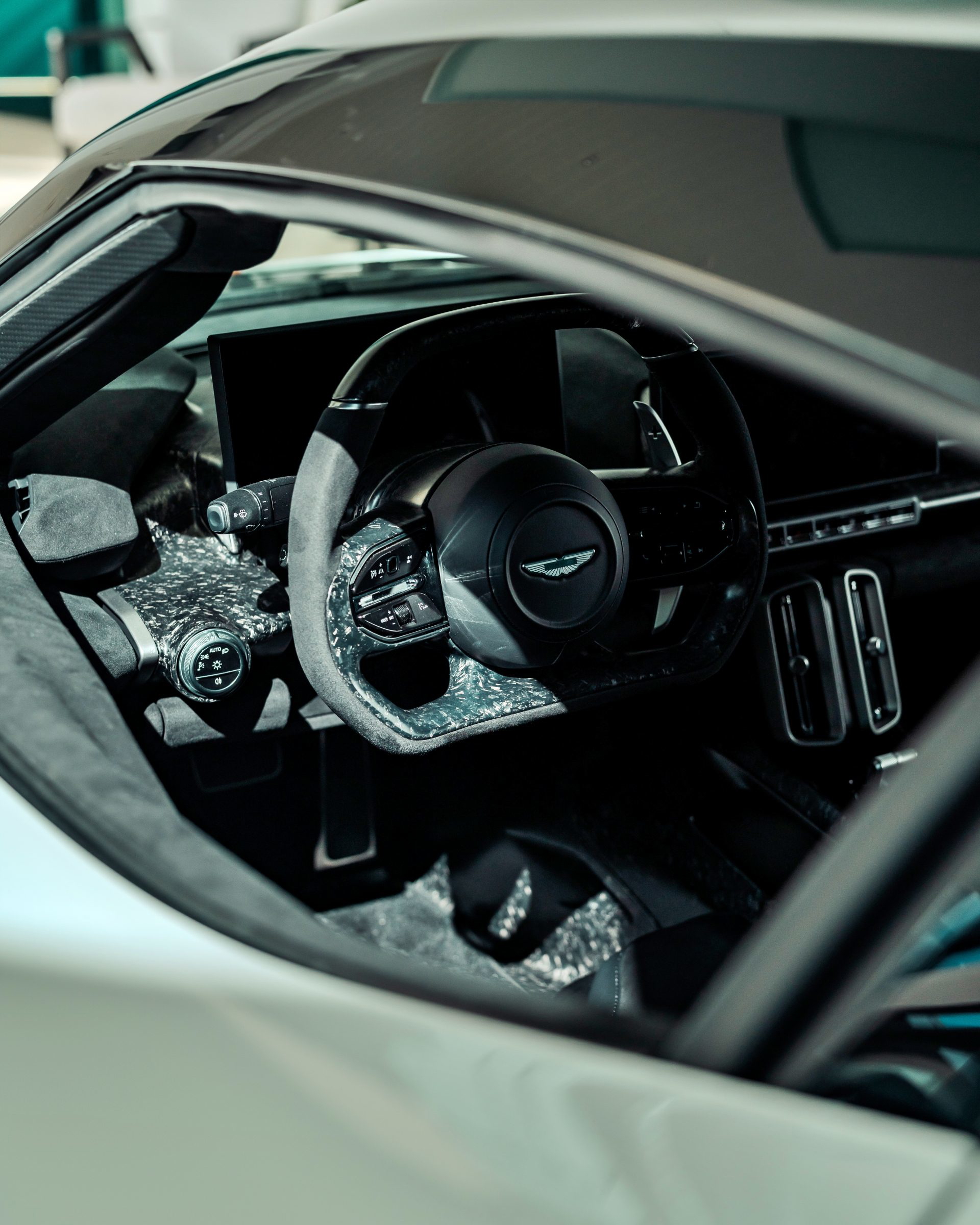 El interior es uno de los puntos donde más evolución se percibe. Fabricado a partir de un chasis monocasco de fibra de carbono, el habitáculo es digno de un coche de carreras, sin embargo la sensación de espacio y confort es notablemente superior frente a lo que podemos encontrar en el Valkyrie. A ello también ayuda el nuevo diseño de puertas con apertura vertical y el mayor espacio libre en el hueco de acceso. El diseño del cockpit es muy ergonómico, sumamente deportivo, pero permite una mejor gestión de todas las funciones, hace más fácil alcanzar una postura óptima de conducción sin importar tu talla y además disfrutamos de mayor visibilidad en todos los ángulos.