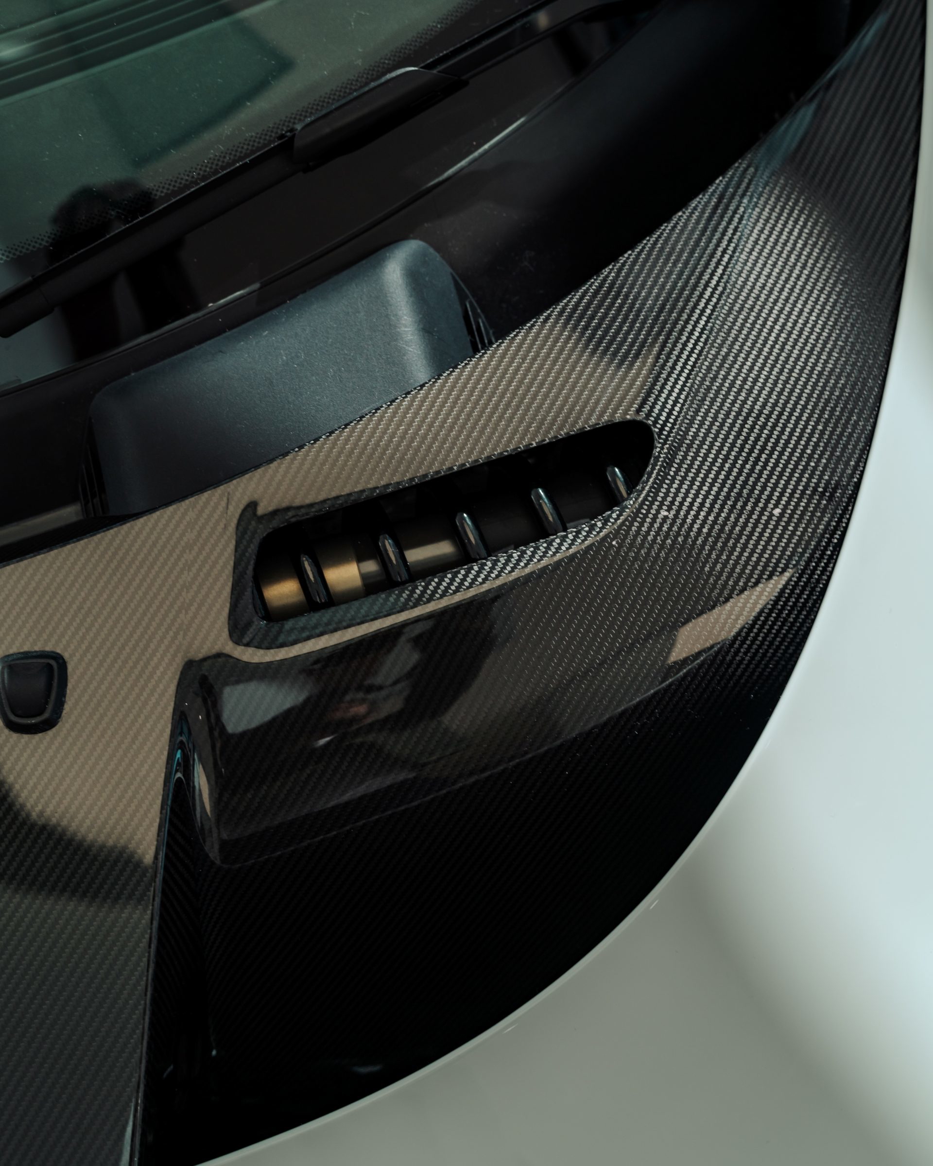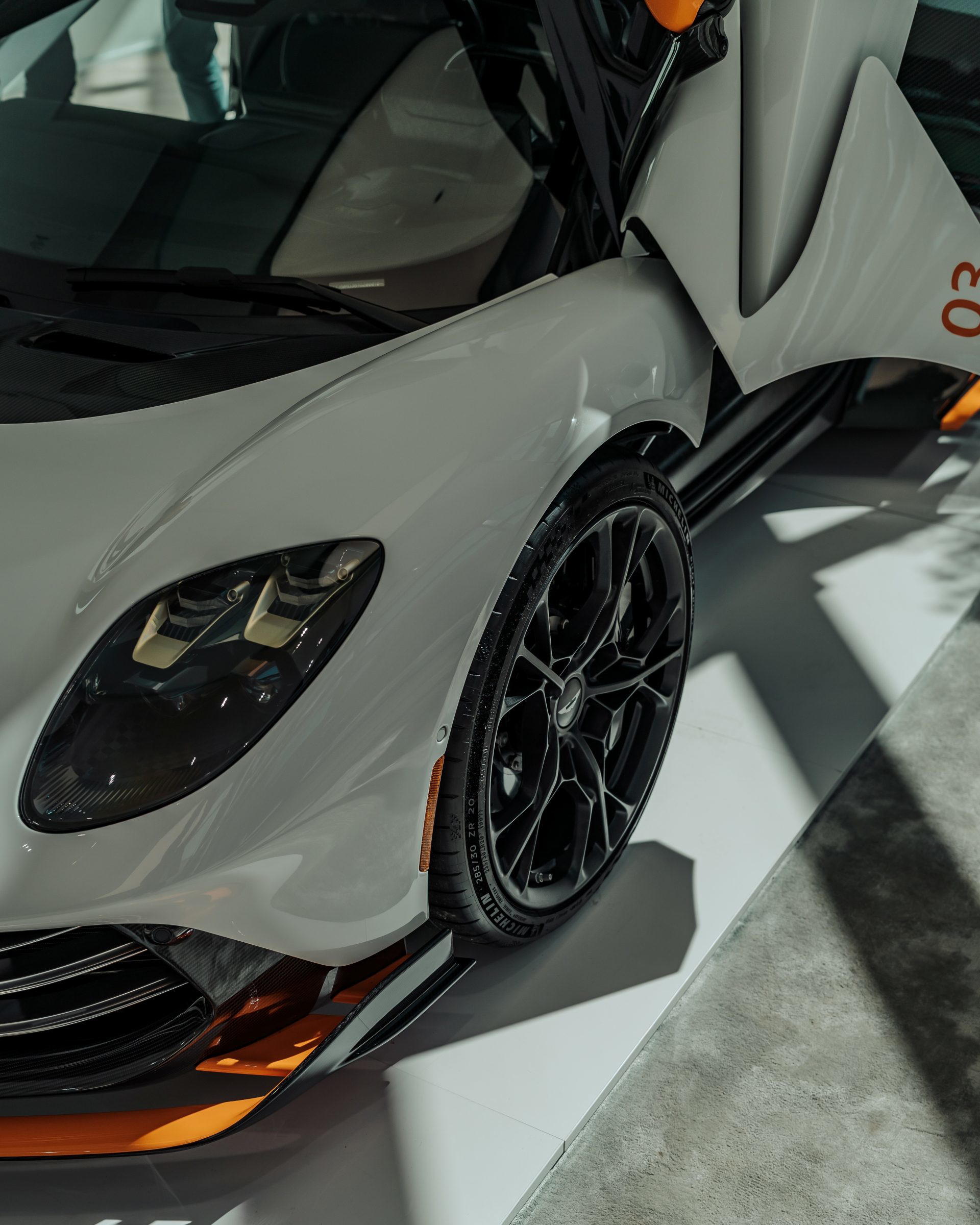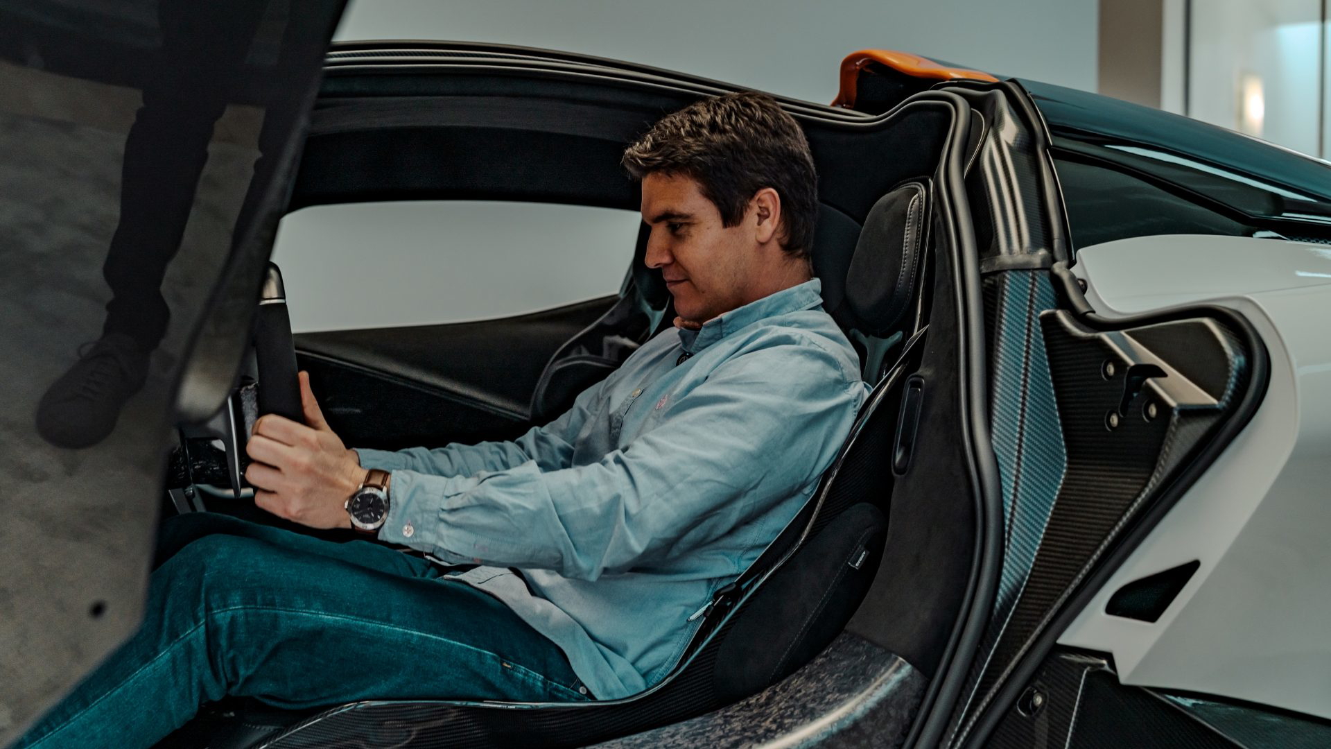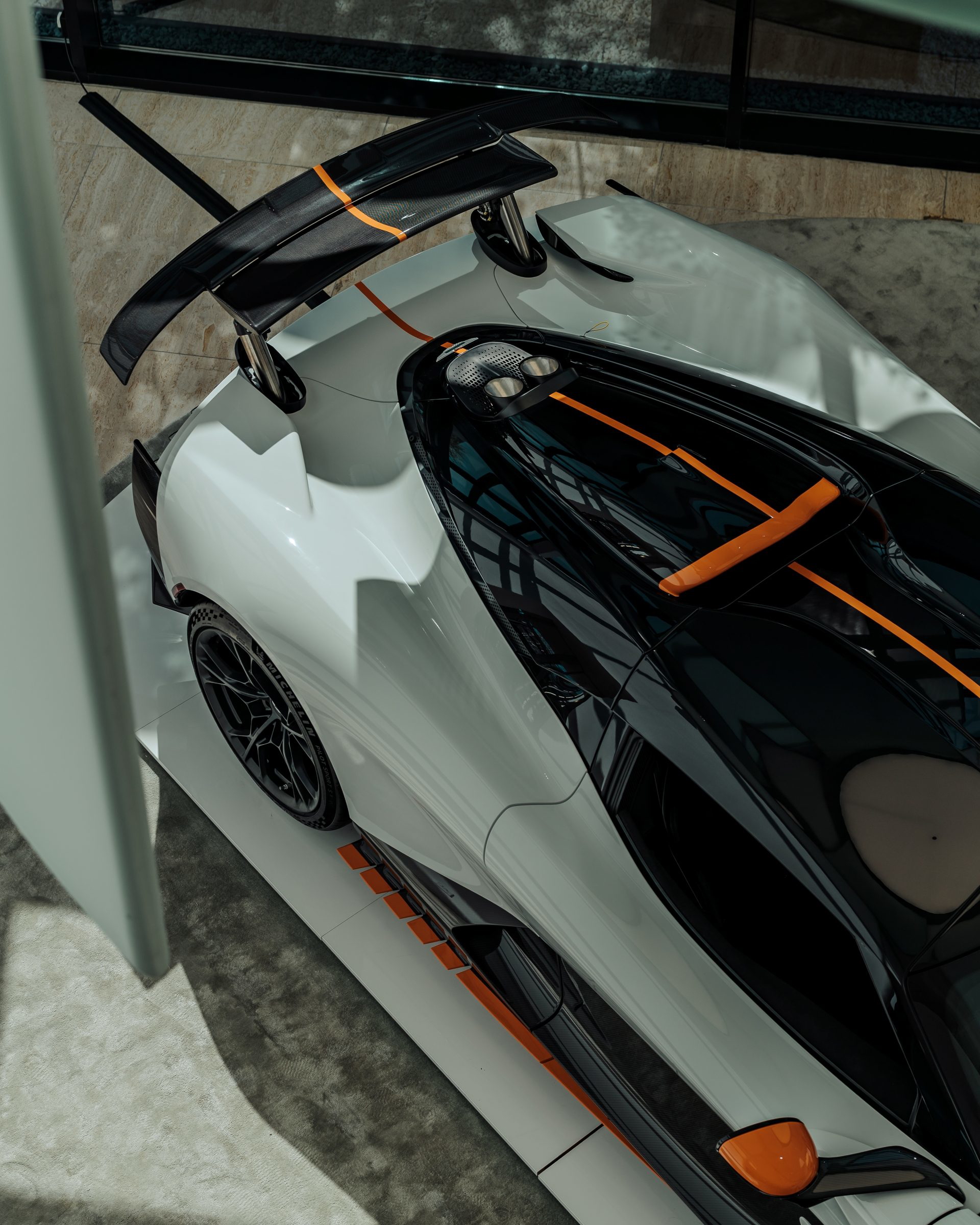 El interior es uno de los puntos donde más evolución se percibe. Fabricado a partir de un chasis monocasco de fibra de carbono, el habitáculo es digno de un coche de carreras, sin embargo la sensación de espacio y confort es notablemente superior frente a lo que podemos encontrar en el Valkyrie. A ello también ayuda el nuevo diseño de puertas con apertura vertical y el mayor espacio libre en el hueco de acceso. El diseño del cockpit es muy ergonómico, sumamente deportivo, pero permite una mejor gestión de todas las funciones, hace más fácil alcanzar una postura óptima de conducción sin importar tu talla y además disfrutamos de mayor visibilidad en todos los ángulos.