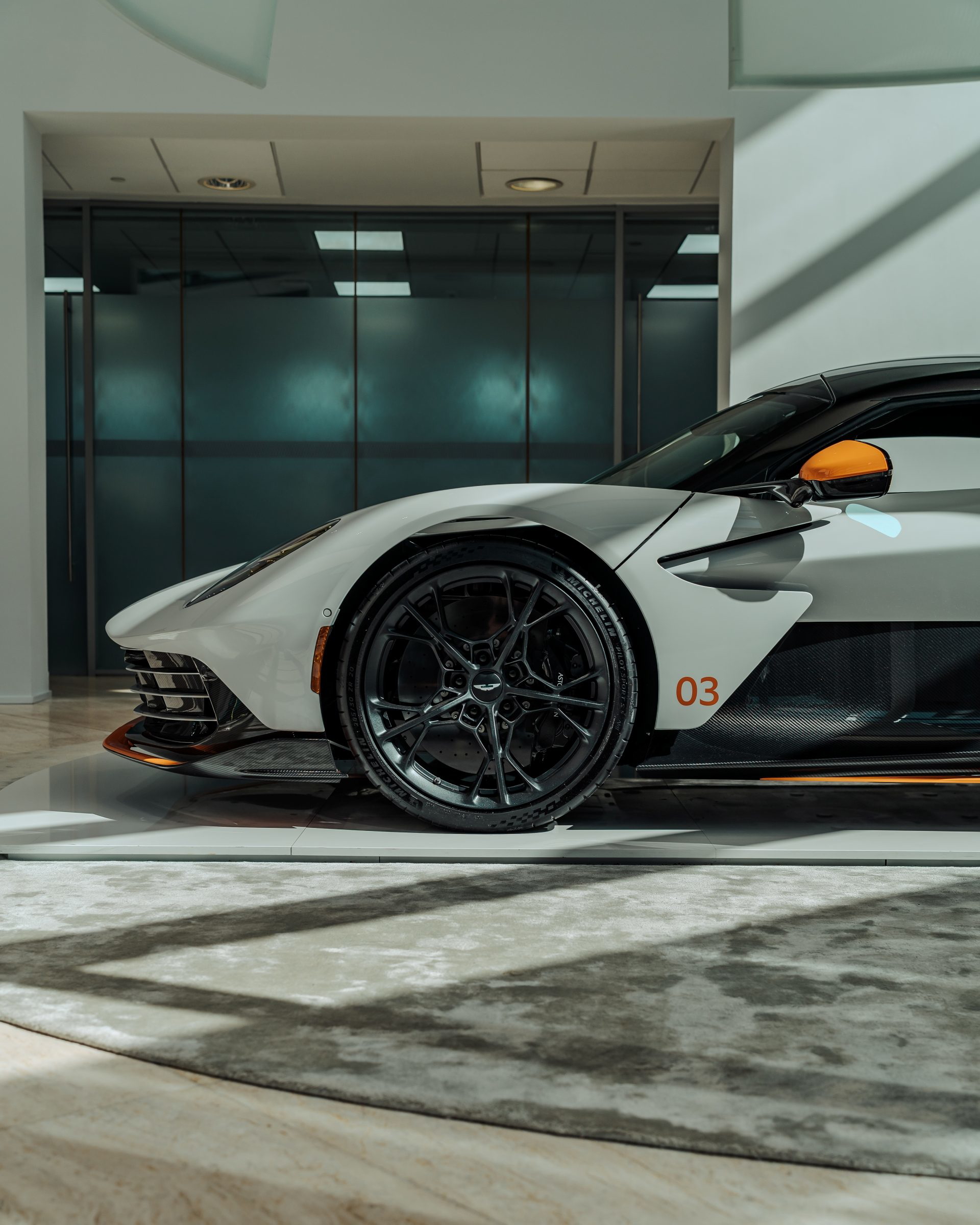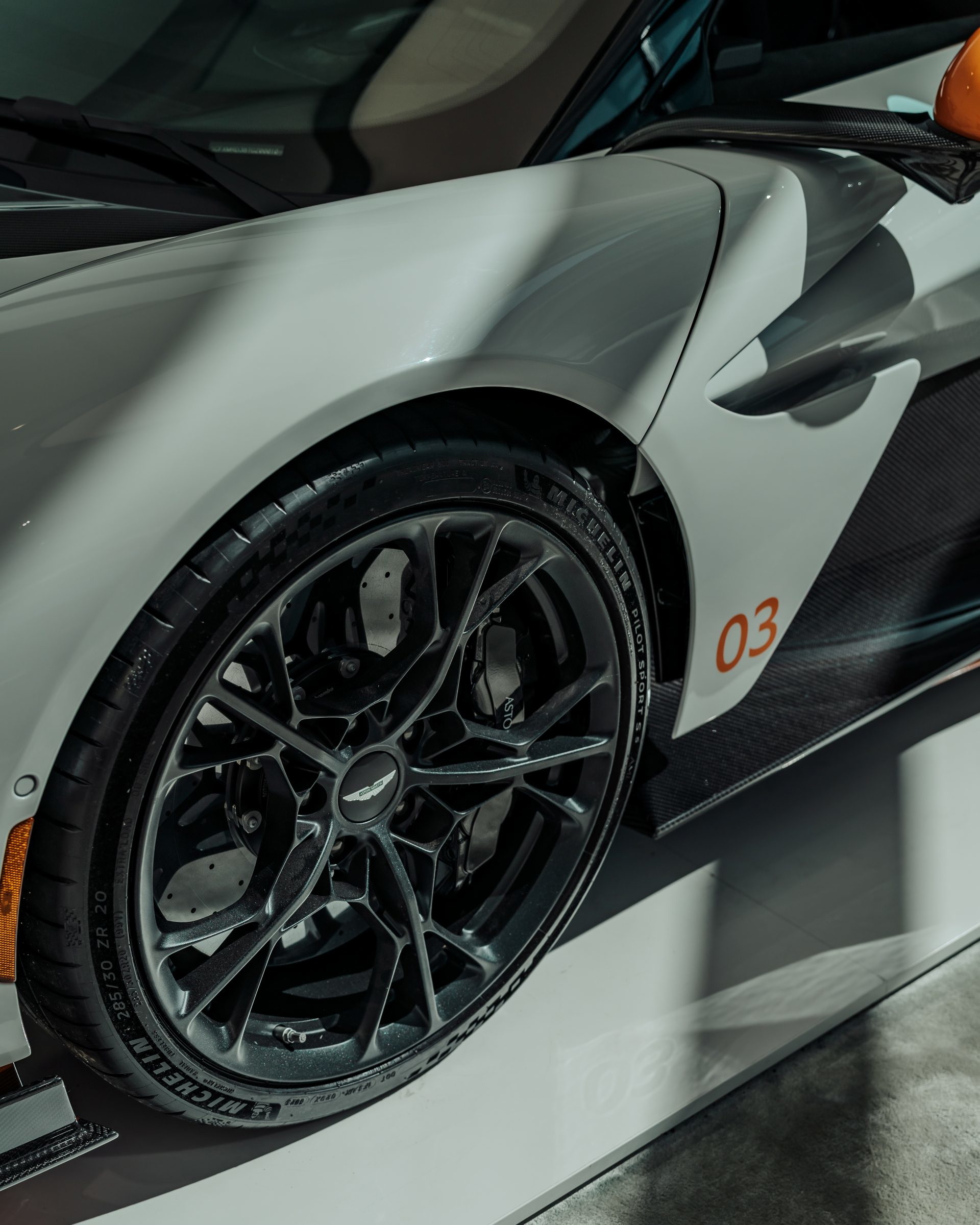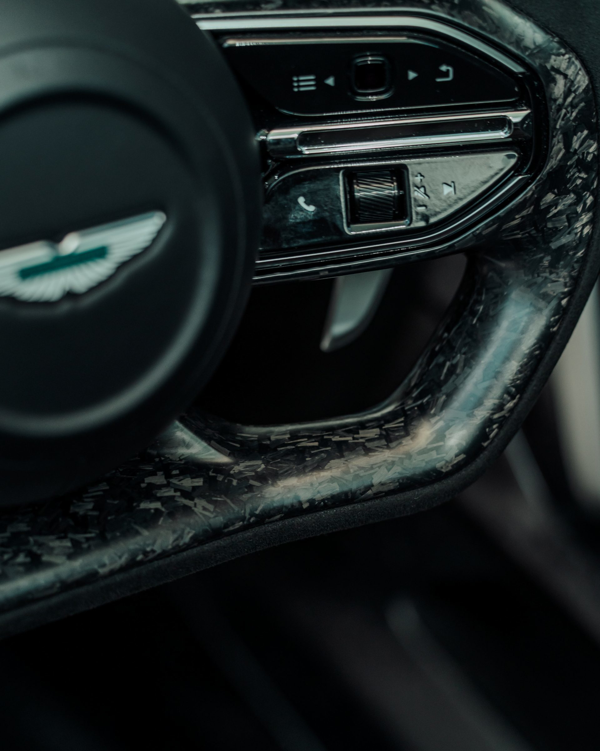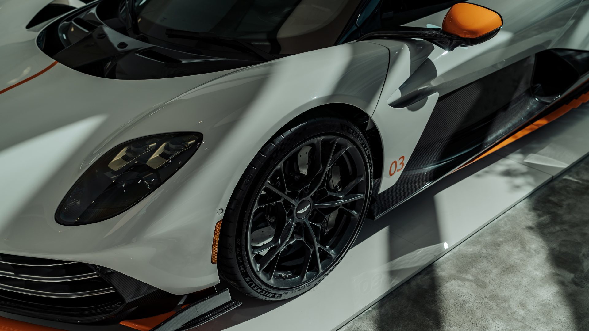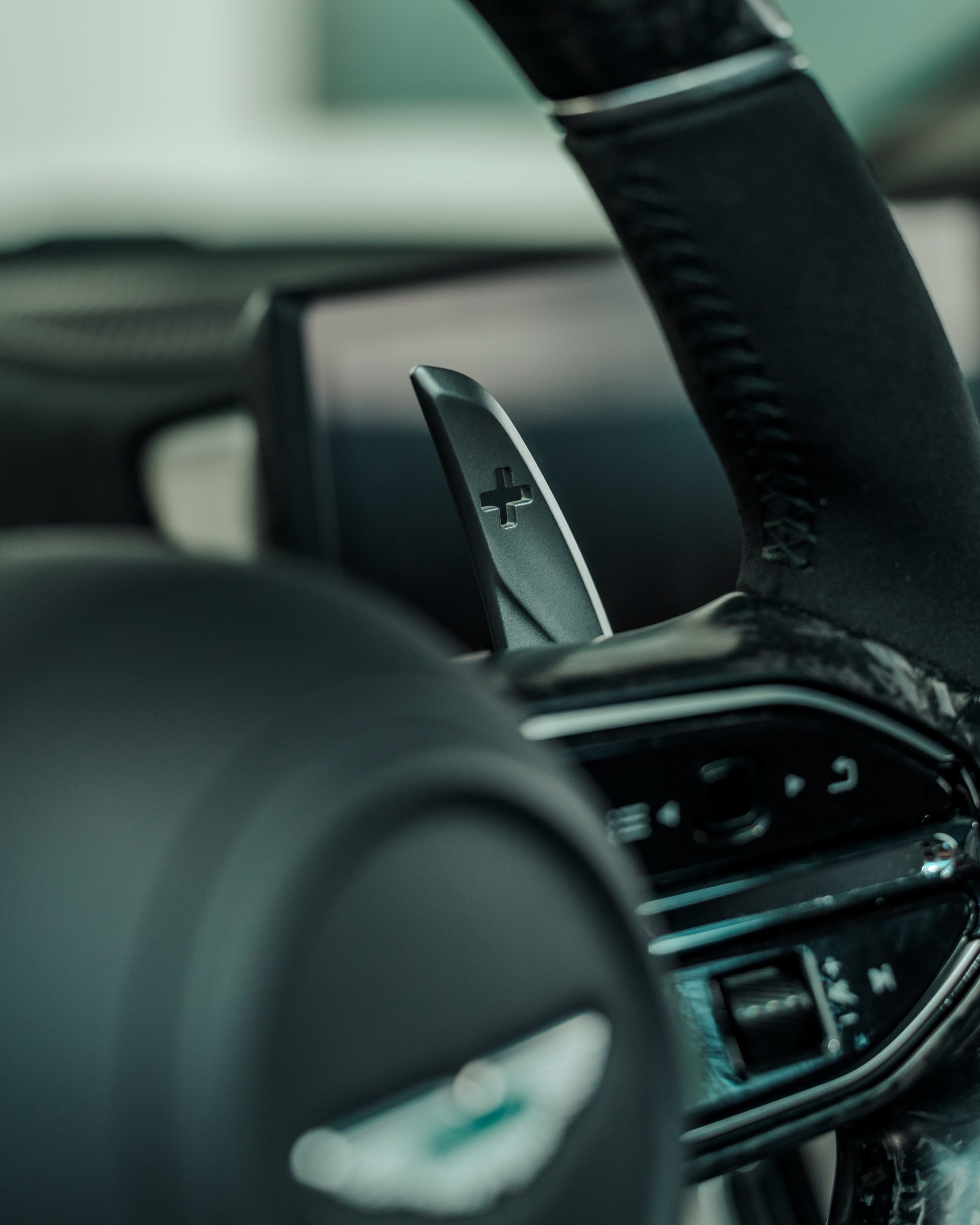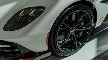 Si echamos un vistazo al chasis, Aston Martin tampoco ha escatimado en recursos a la hora de darle vida. La suspensión corre a cargo de unos Bilstein DTX, mientras que el sistema de frenos es carbocerámico de serie con discos de 410 mm mordidos por pinzas fijas de 6 pistones en el eje delantero y discos de 390 mm con pinzas fijas de 4 pistones en el eje posterior. Y para terminar hablemos de neumáticos, encontrando unos Michelin Sport S 5 AML en medidas 285/30 ZR20 delante y 335/30 ZR21 detrás.