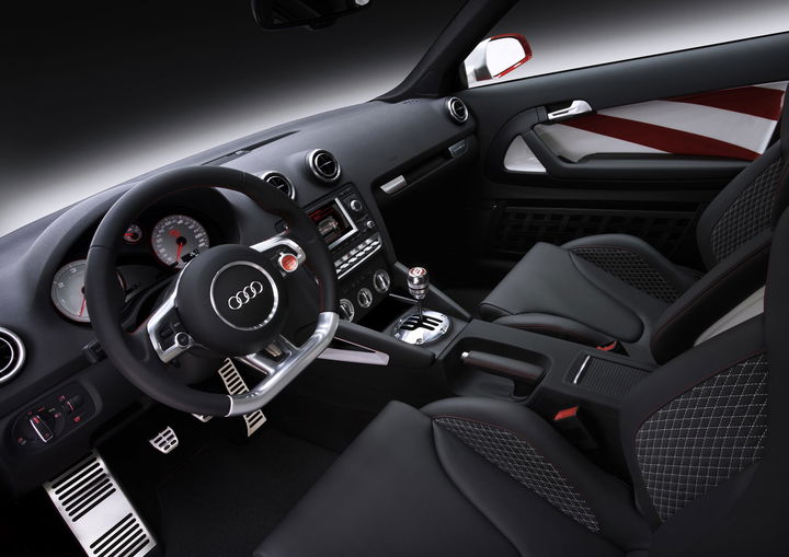 Eran tiempos mejores, decididamente. Este compacto deportivo también presumía de un precioso interior con semi-baquets deportivos, acentos de aluminio y un volante específico. A nivel de chasis, gozaba de suspensión adaptativa magnetoreológica 36 mm mas cercana al suelo que la del coche de producción y frenos carbonocerámicos en el eje delantero: discos de 356 mm de diámetro abrazados por pinzas de seis pistones. Además, contaba con un sistema Audi drive select de selección de modos de pilotaje – en la época, algo exótico.
