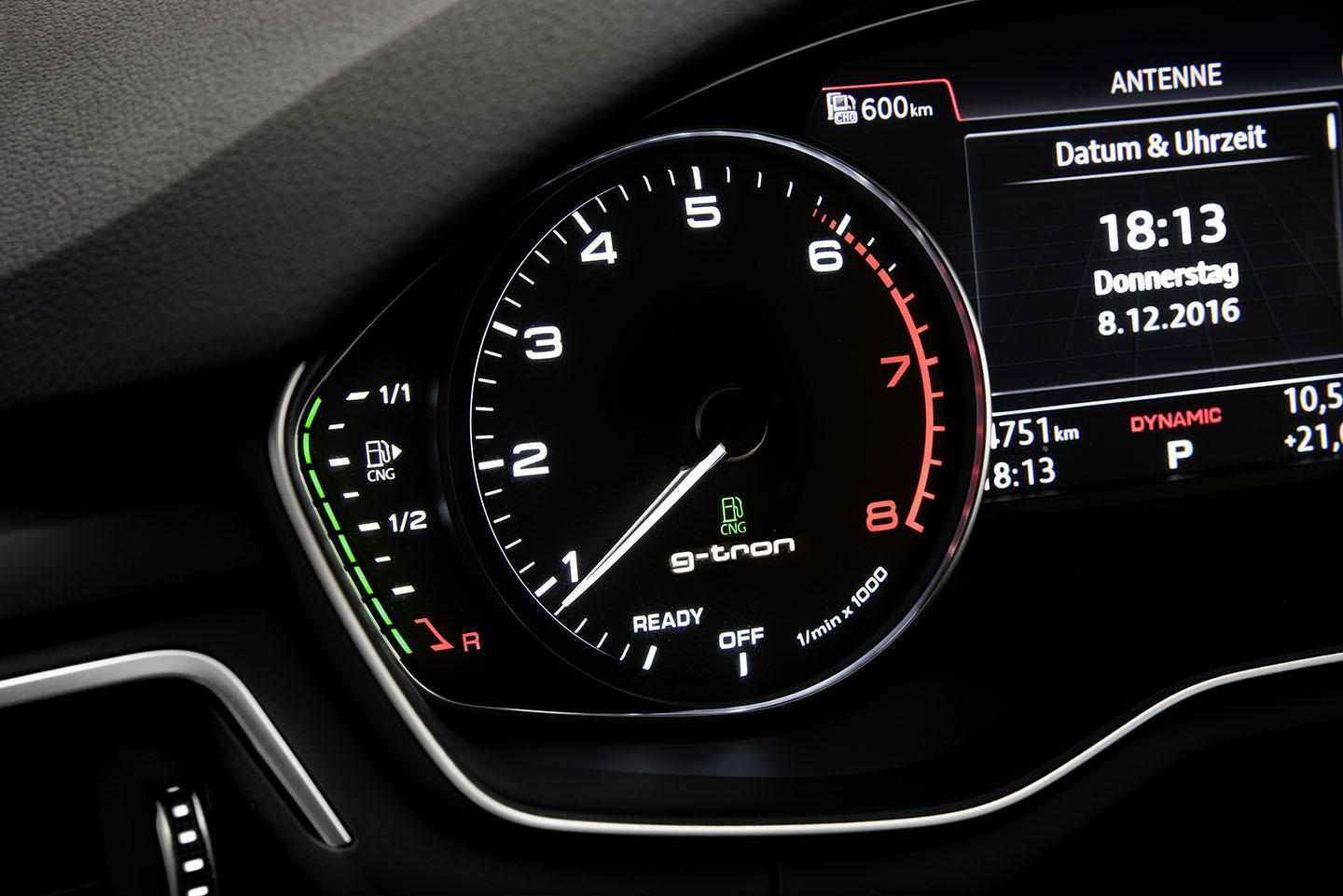 La gran ventaja del gas natural es la de conseguir un combustible con un coste por kilómetro muy bajo. Según homologación NEDC, su consumo es de 3,8 kilogramos/100 kilómetros. Audi habla de un coste por cada 100 kilómetros recorridos inferior a los 4 euros, según los precios actuales del gas natural. Cuando es necesario consumir gasolina, porque se ha agotado el depósito de gas natural, el consumo medio según homologación es de 5,5 litros de gasolina/100 kilómetros.