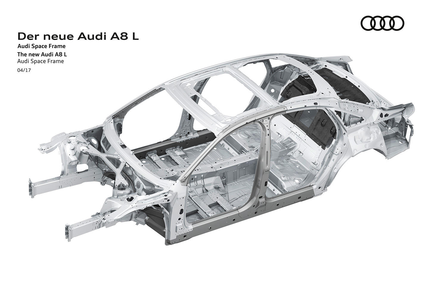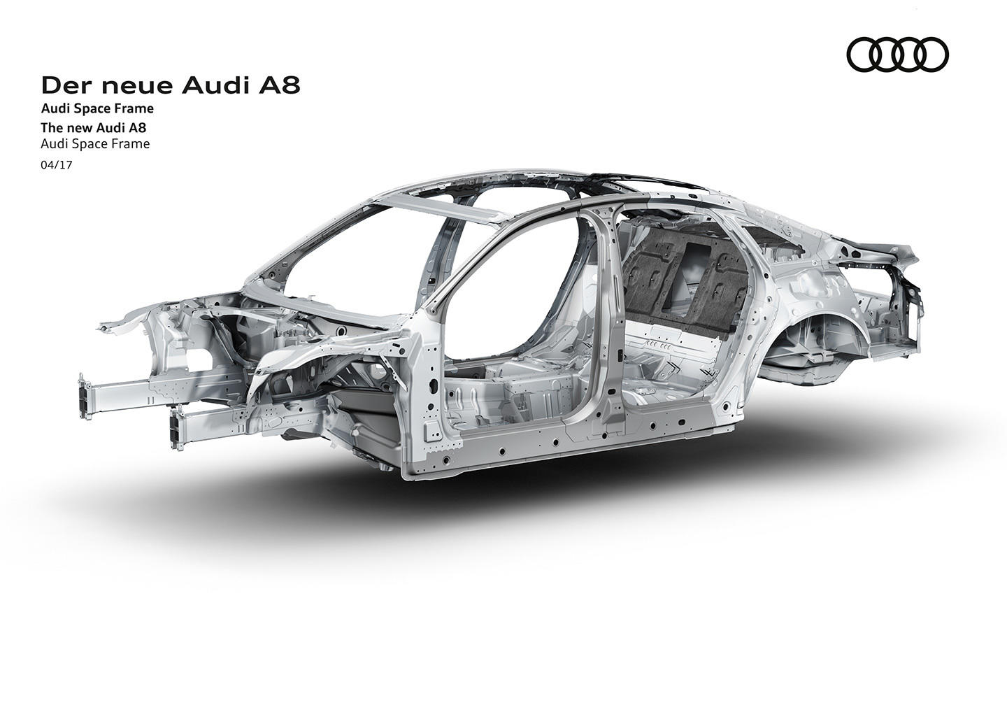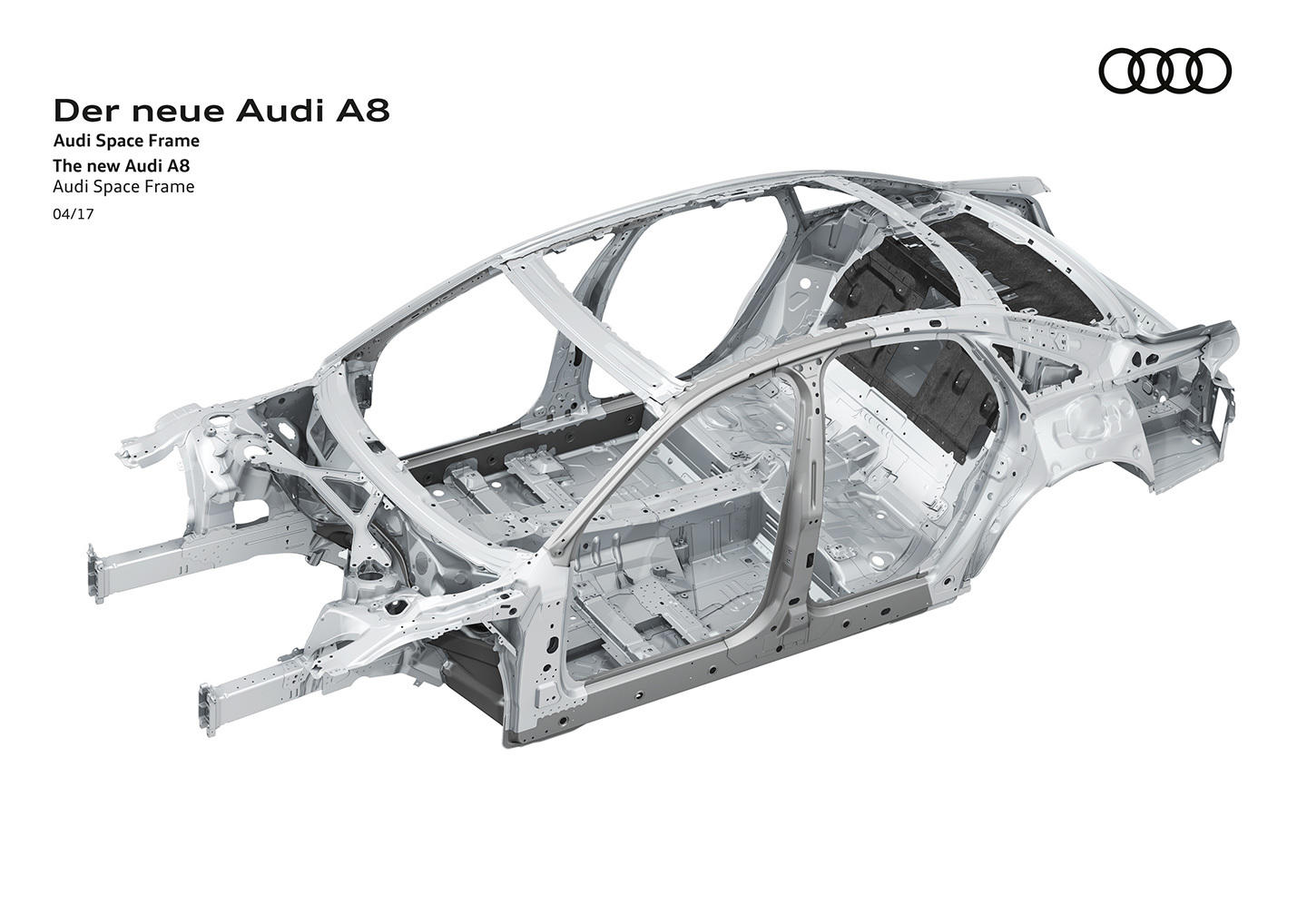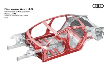 No esperábamos que nuestra primera cita con el nuevo Audi A8, que las primeras imágenes que viéramos de la nueva generación del buque insignia de Audi, nos lo mostrasen completamente desnudo. Tan desnudo como para aparecer sin carrocería y, lo creas o no, revelarnos uno de sus mayores secretos. Audi Space Frame es la denominación que, desde hace tiempo, Audi ha escogido para definir la estructura de sus automóviles bajo una serie de filosofías, que van desde la planificación de los propios componentes que dan forma a la carrocería, al arte de combinar diferentes materiales con un objetivo muy concreto: crear un coche con una rigidez estructural alta y el mínimo peso posible. ¿Y qué nos pueden decir estas 27 imágenes del nuevo Audi A8 y de su Audi Space Frame?
