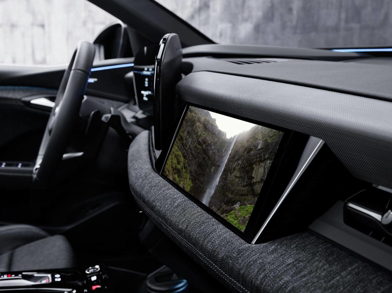Al respecto de esta pantalla, Audi nos cuenta que con 10,9 pulgadas ofrecerá el control al pasajero de funciones como el navegador, pero también acceso a funciones de entretenimiento específicas, de manera que este pueda ver contenidos multimedia – como una película – sin distraer al conductor. Audi no detalla exactamente en qué consiste lo que denominan modo de privacidad activa, que entendemos que con la orientación de la pantalla central hacia el conductor y el control de los ángulos de visión impedirá que el conductor pueda ver los contenidos de esta pantalla desde su posición.