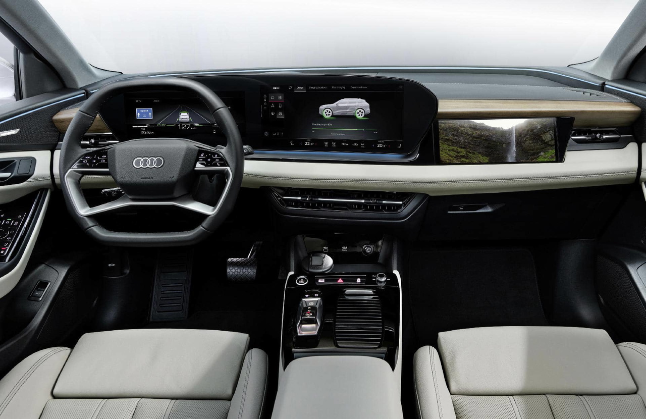 Audi acaba de desvelarnos la evolución de sus interiores, y de sus sistemas de infoentretenimiento y pantallas, mostrándonos las primeras imágenes del interior del nuevo Audi Q6 e-tron. El nuevo eléctrico de Audi estrenará este nuevo despliegue de pantallas que, sin romper con todo lo visto en sus productos hasta ahora, y abogar por una solución completamente diferente, sí introduce esta tercera pantalla, que imaginamos acabará llegando a otros modelos de la marca de los cuatro aros.