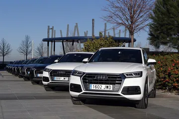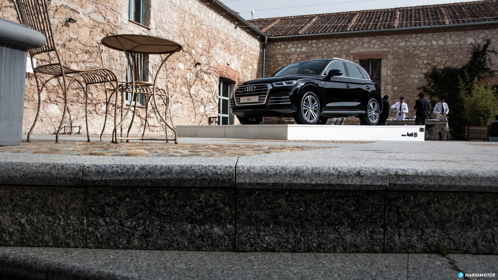 Allí están todos los Audi Q5, al lado de la Torre Espacio y colocados en hilera. Nos explican que podemos elegir entre diferentes motorizaciones por lo que mi compañero y yo nos decidimos inicialmente por el 2.0 TDI de 190cv con acabado S Line.