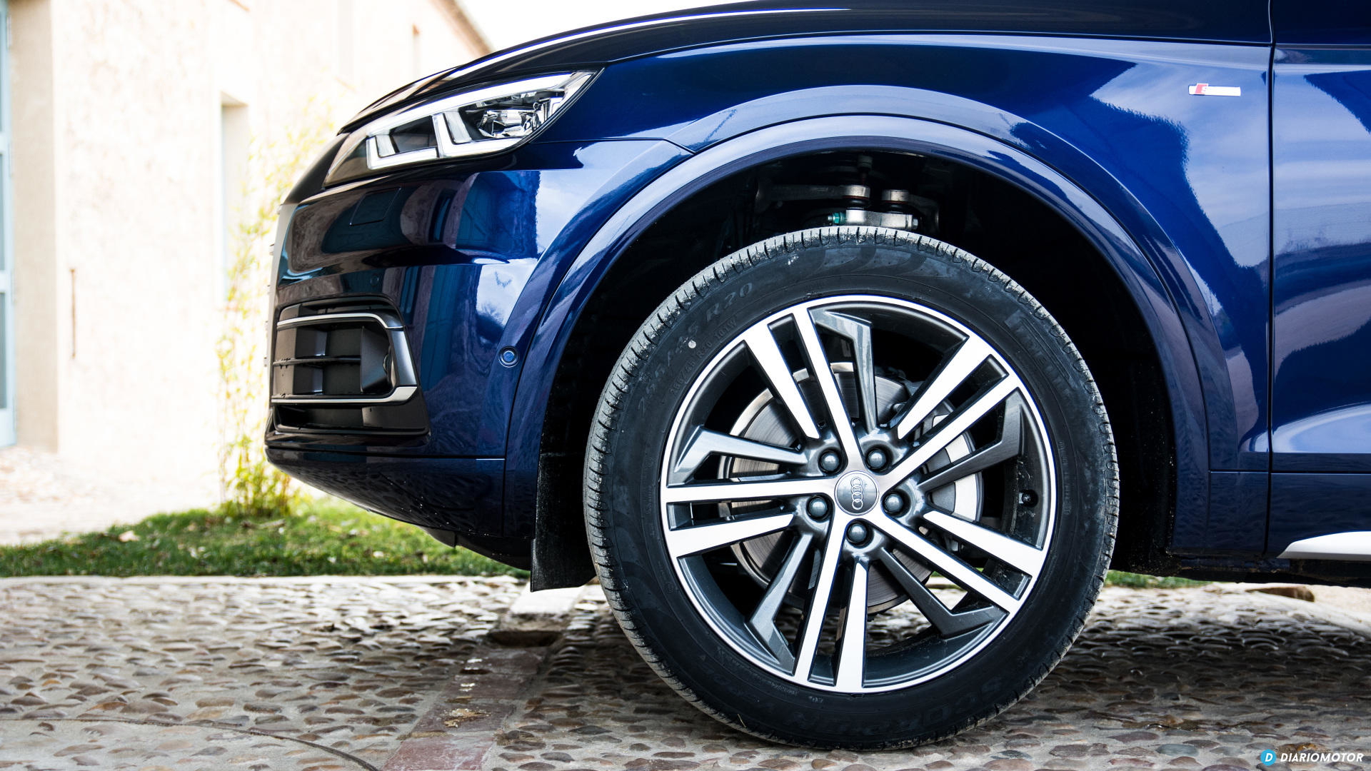 De serie el Audi Q5 ofrece una suspensión dinámica, aunque opcionalmente ofrece una suspensión deportiva en la que no varía la altura respecto a la de serie pero si la dureza de los muelles. Además se ofrece tambien la suspensión regulable Damper control, pudiendo elegir entre deportividad y confort. En todas ellas la altura del coche será la misma, de unos 200mm.